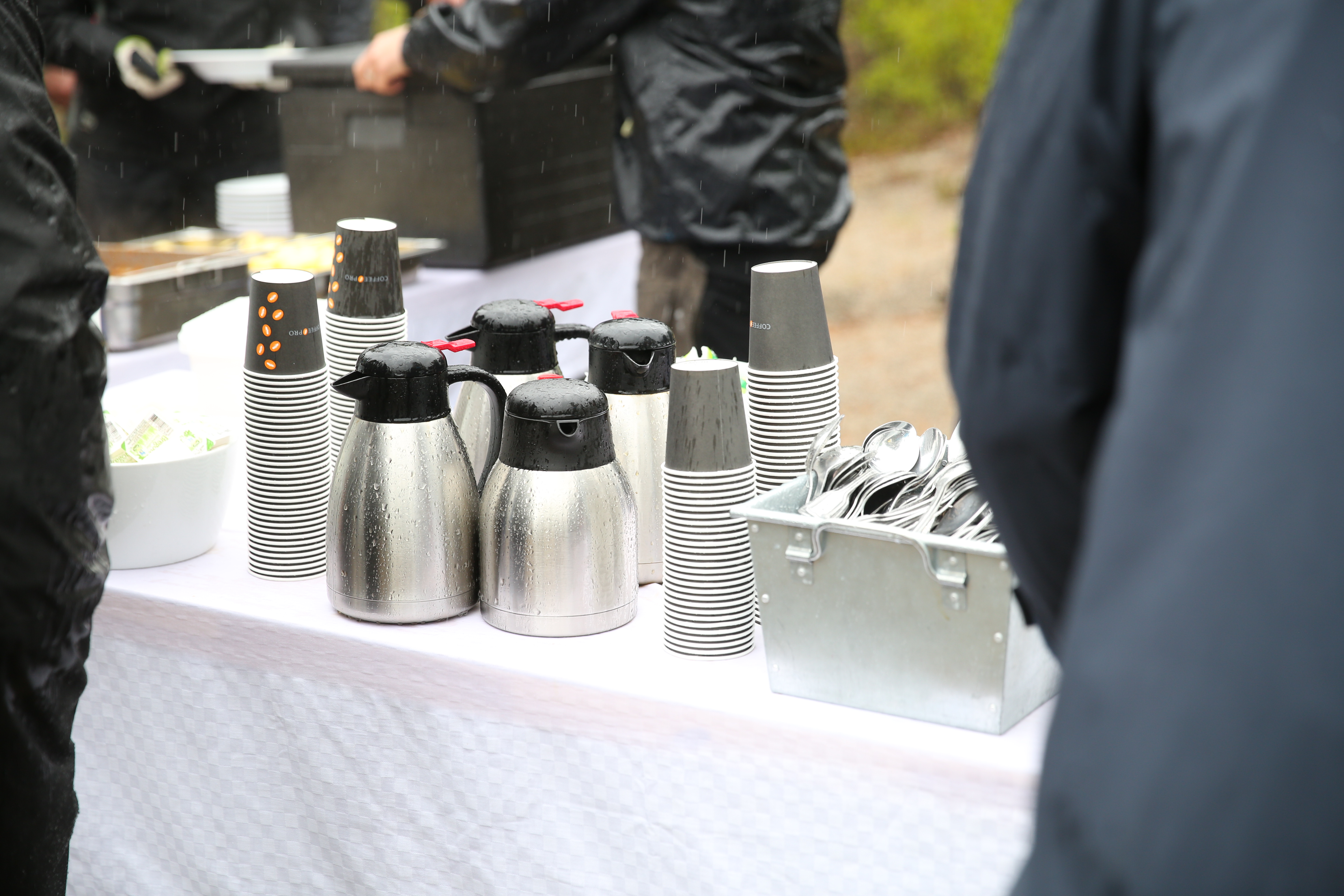 - Beskrivning: Medarbetarmöte MO Nord, mat, måltid, lunch lunchservering, kaffekanna, muggar