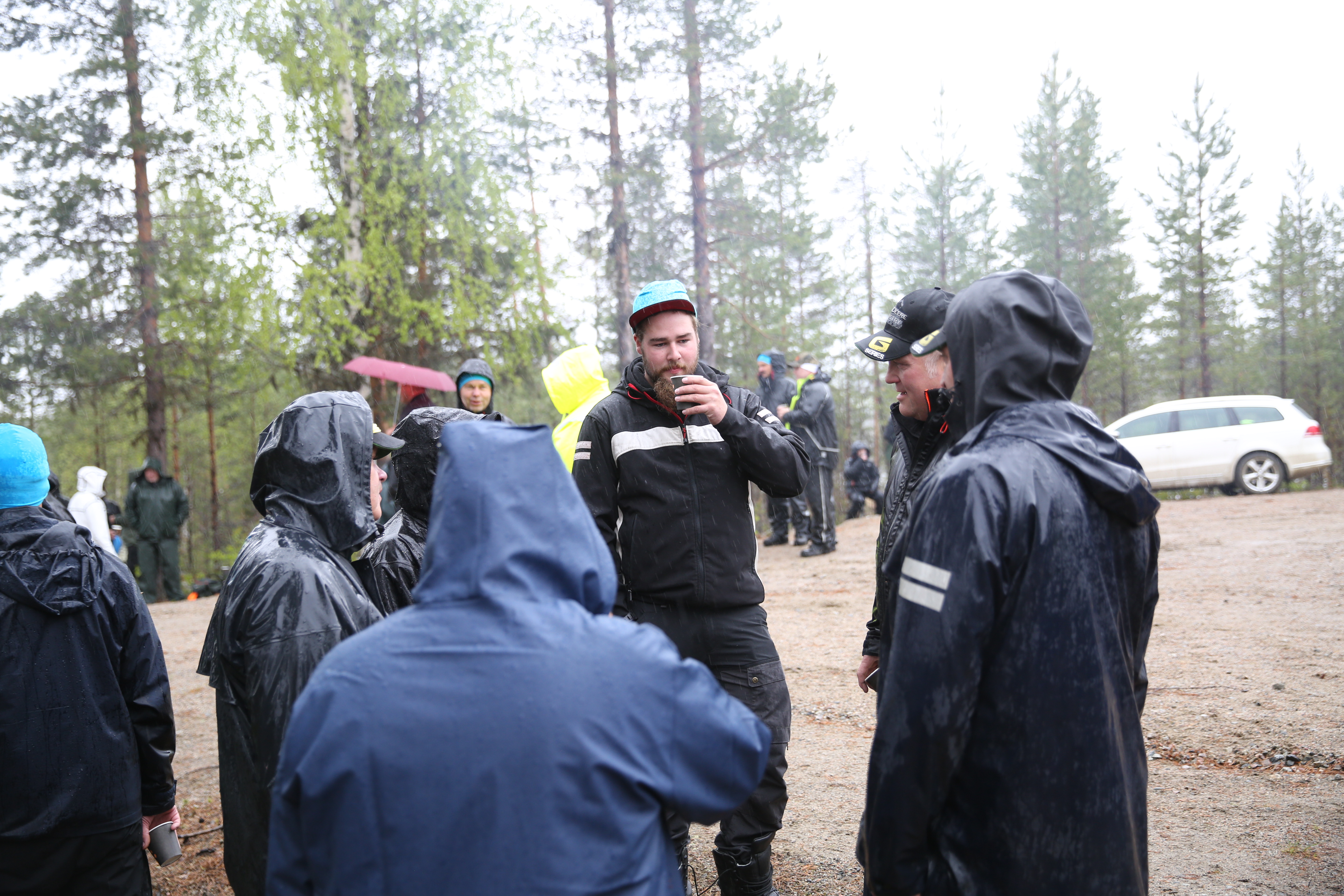 • Beskrivning: Medarbetarmöte MO Nord, regnjacka, regnkläder, kaffe, kaffepaus