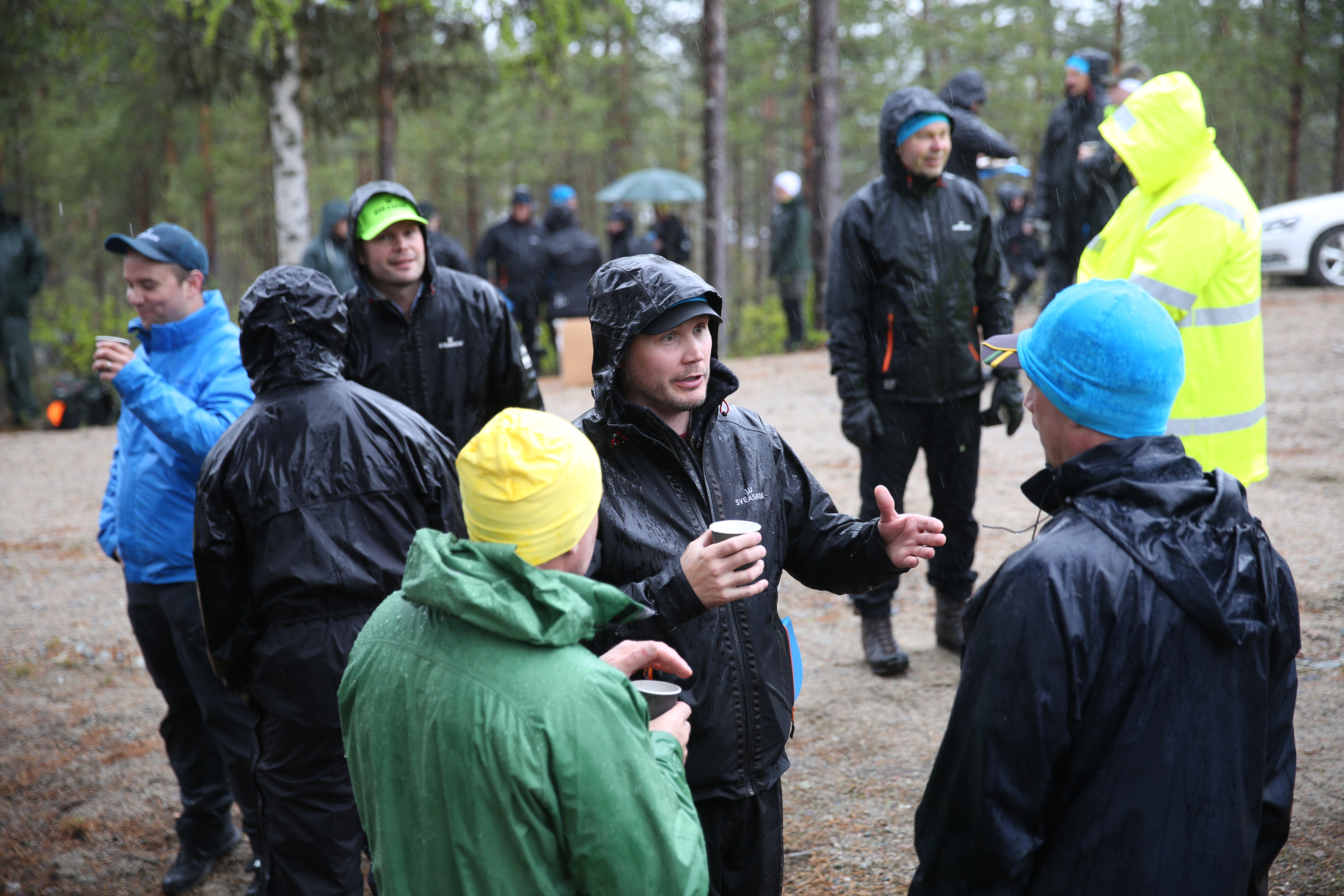 - Beskrivning: Medarbetarmöte MO Nord, regnjacka, regnkläder, kaffe, kaffepaus
