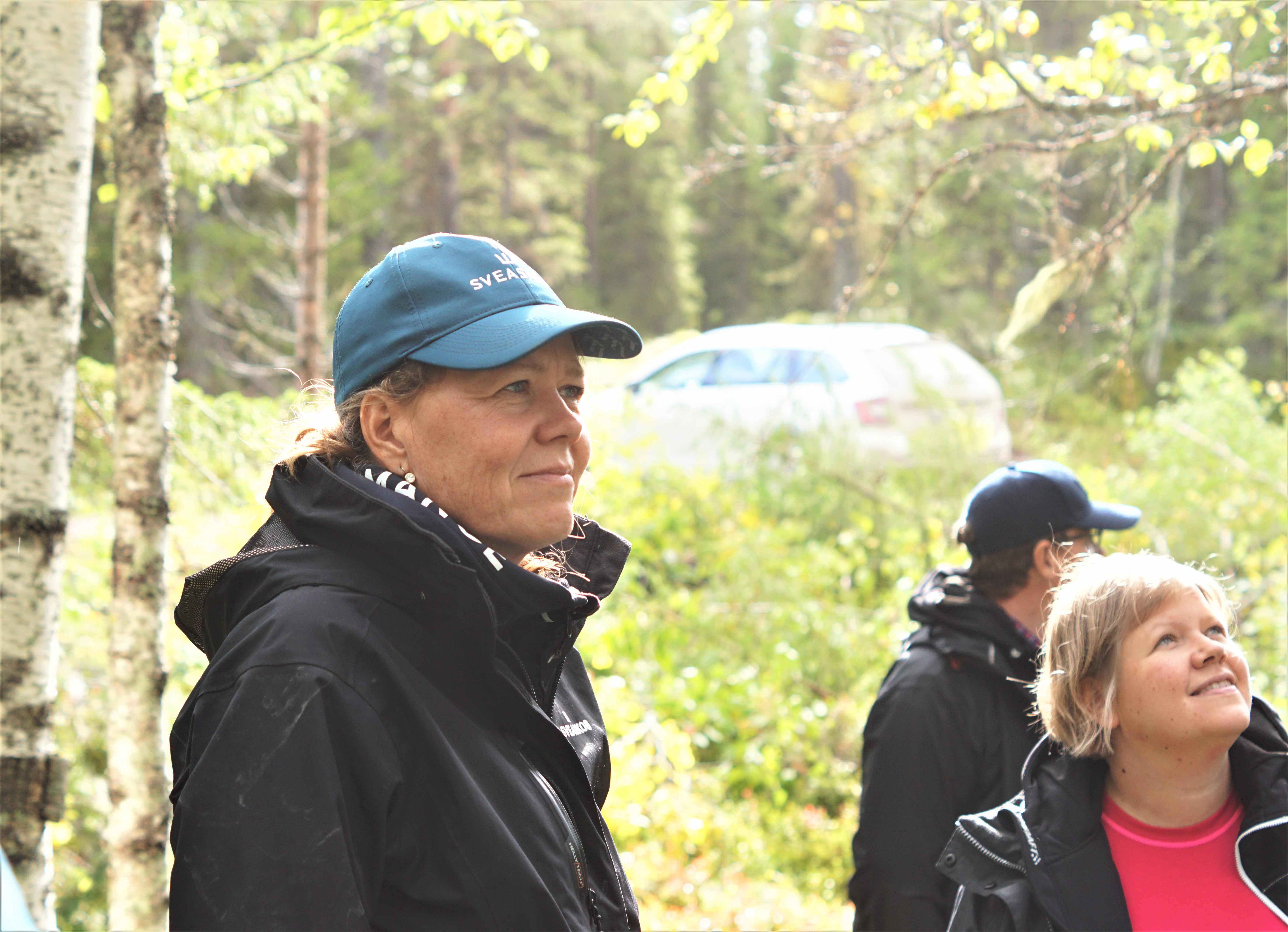 - Beskrivning: Anette Waara i skogen. Hannele Arvonen på besök i MO Nord.