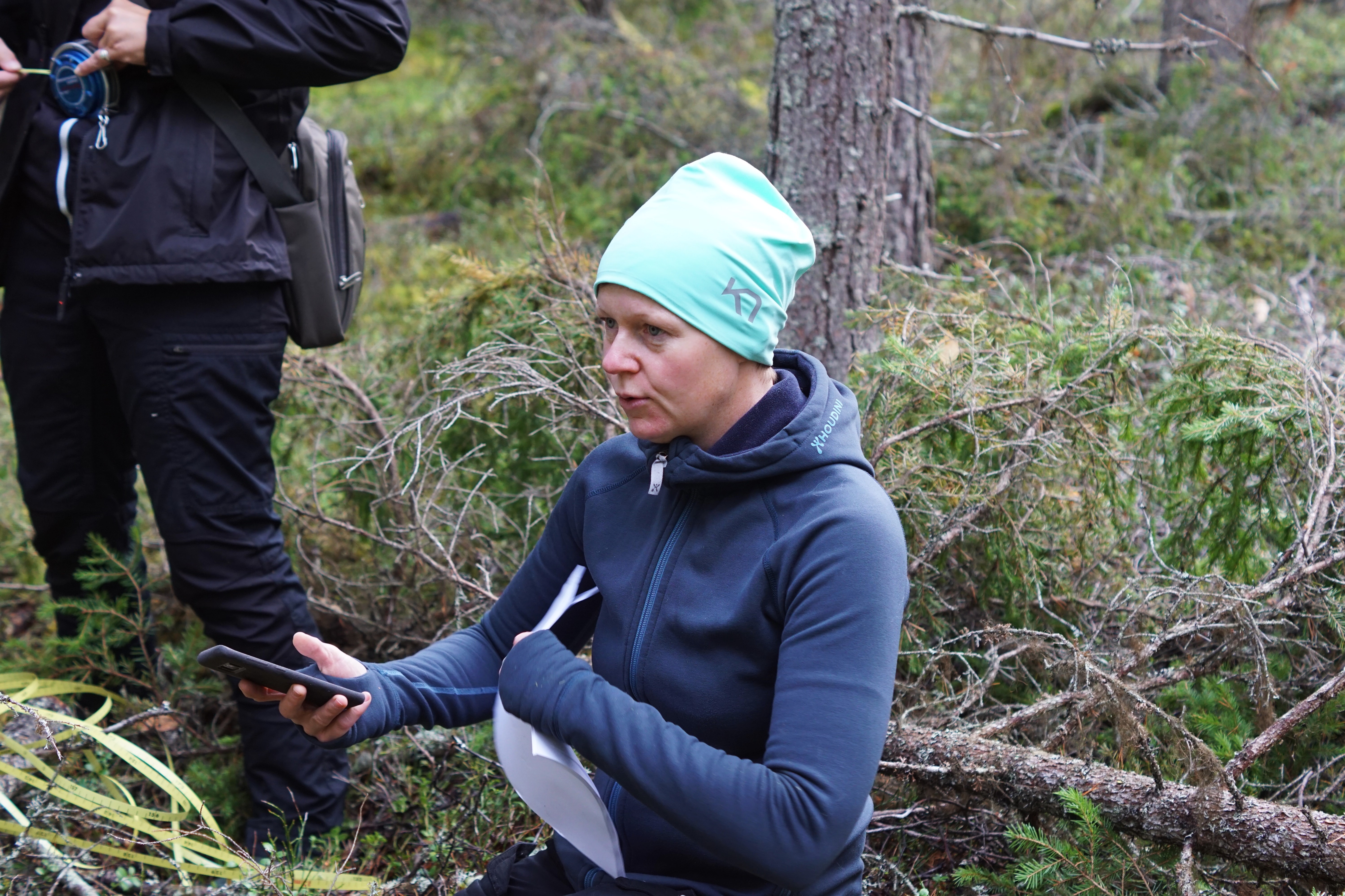 - Beskrivning: Jenny Stenberg visar naturvårdsbedömningar i fält. Hannele Arvonen på besök i MO Nord.