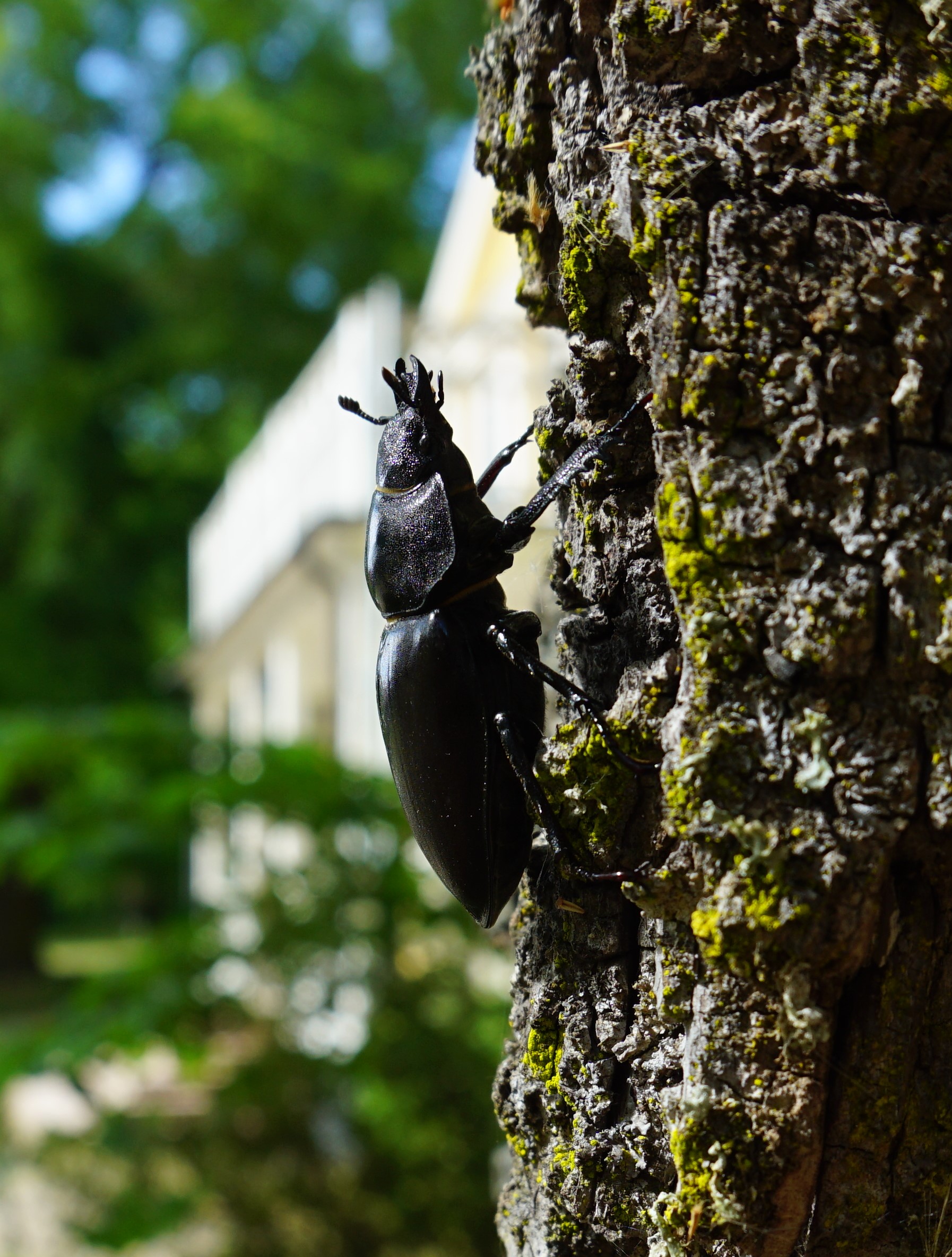 - Beskrivning: Ekoxehona, Ekoxe, Böda ekopark, insekter, insekt, svart insekt, träd, trädstam, klättra, sommar