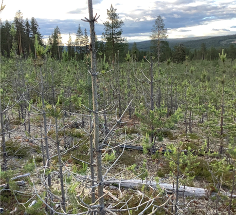 - Beskrivning: Ung tallskog skadad av älgbete, betesskador, tallungskog