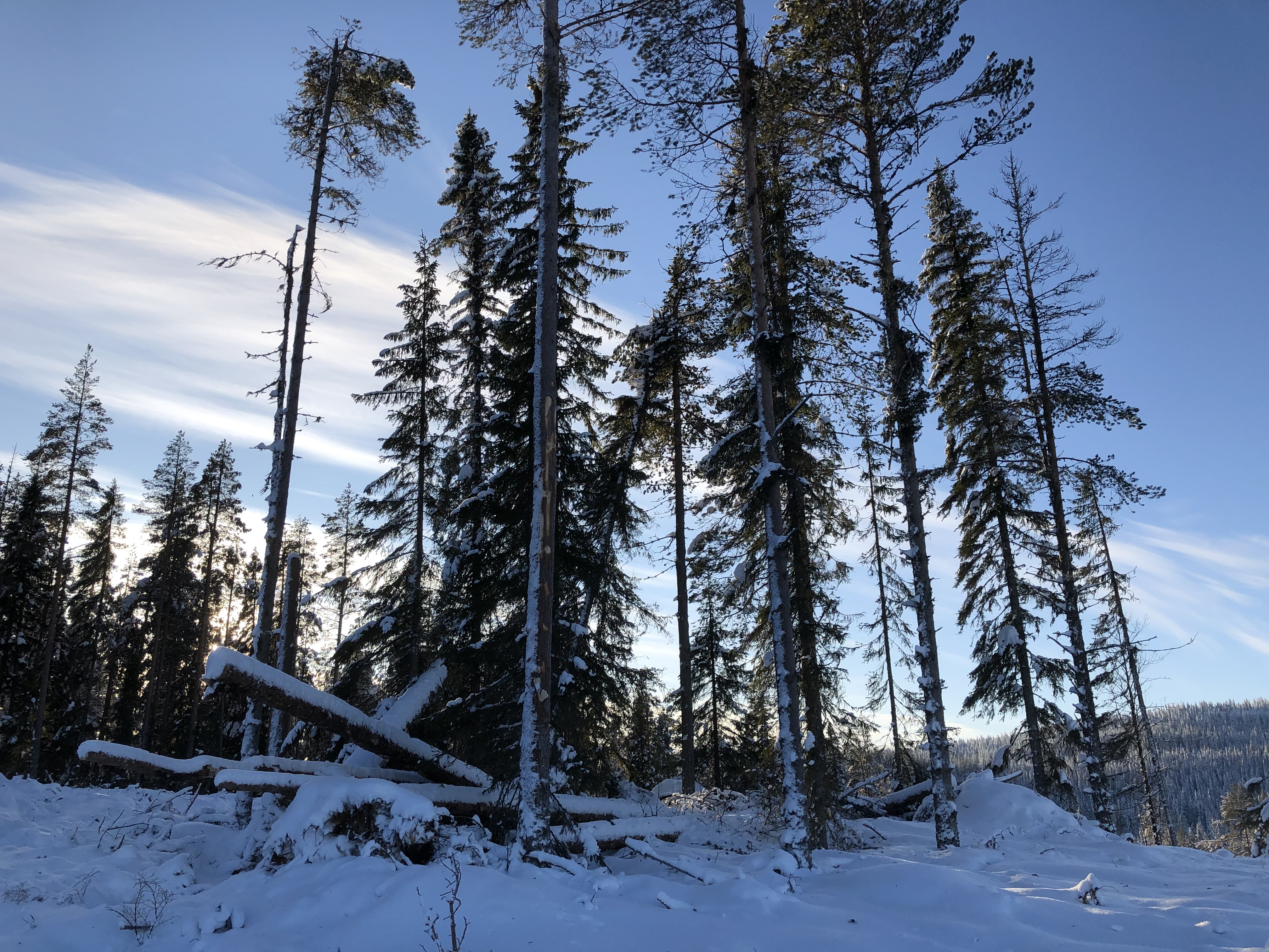 - Beskrivning: Uppföljning slutavverkning. Maskinlaget har föredömligt placerat sentida död ved av lägre kvalitet in i hänsynen, för en bättre naturvård och en bättre utförd framtida markberedning. Hänsyn, naturhänsyn, hänsynsyta