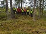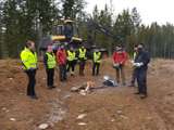 - Beskrivning: Diskussion i skogen om hur planeraren tänkt. Från vänster syns Mikael Rhönnstad, Tobias Nilzon, Kånsab, Vegard Haanaes, vd Gysinge, skördarförare, Kånsab, och Erik som är Gysinges planerare.