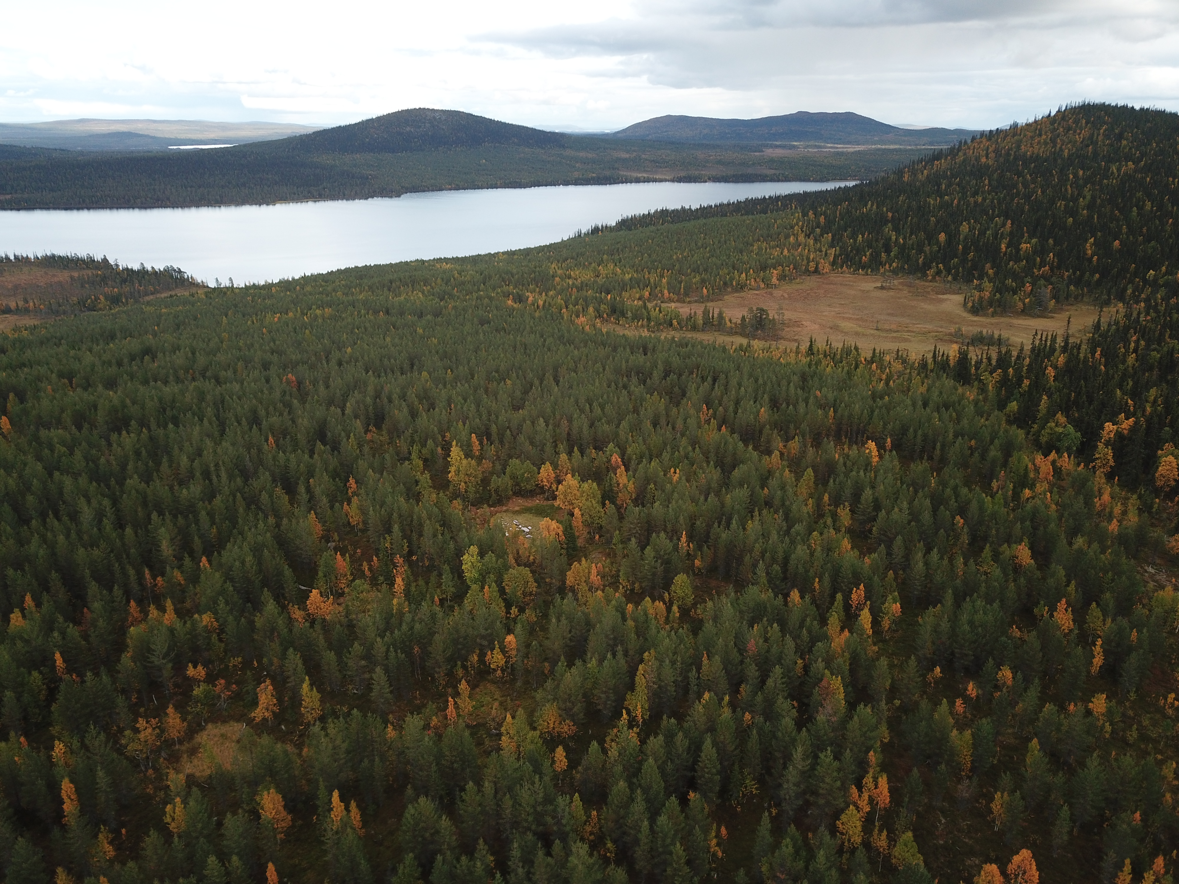 - Beskrivning: Fastighetsobjekt som låg till försäljning på Sveaskog.se i början av Mars 2020, Arjeplog Rebakk, ovanifrån, landskap, skogslandskap, vy, skog, sjö
