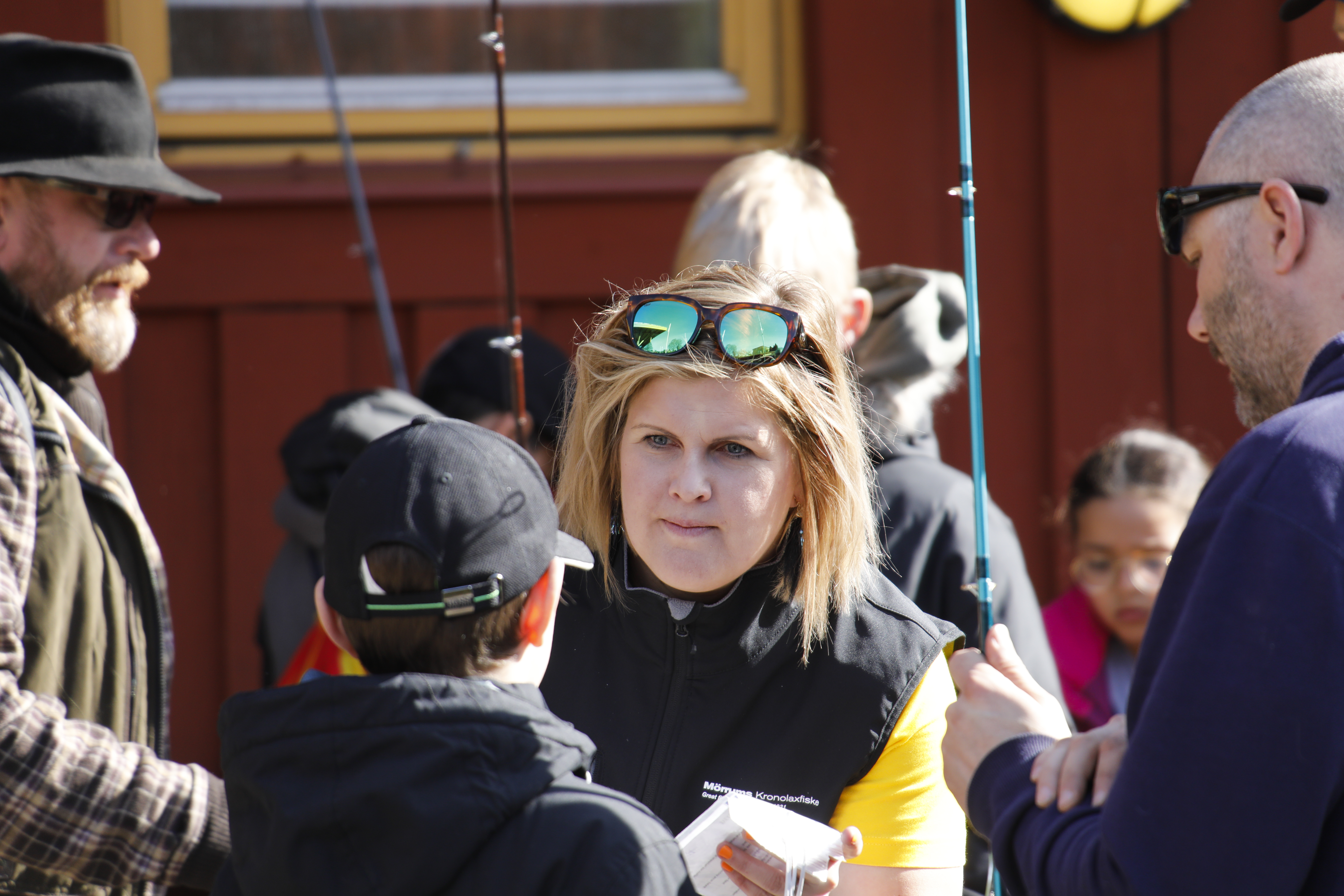 - Beskrivning: För tredje året i rad arrangerade Mörrums Kronolaxfiske årets första Ungdomsfiskets dag i strålande aprilväder under långfredagen. Tjugo barn var anmälda till årets Ungdomsfiskets dag. Platschefen Ida-Maria Rigoll instruerar barnen ordentligt.