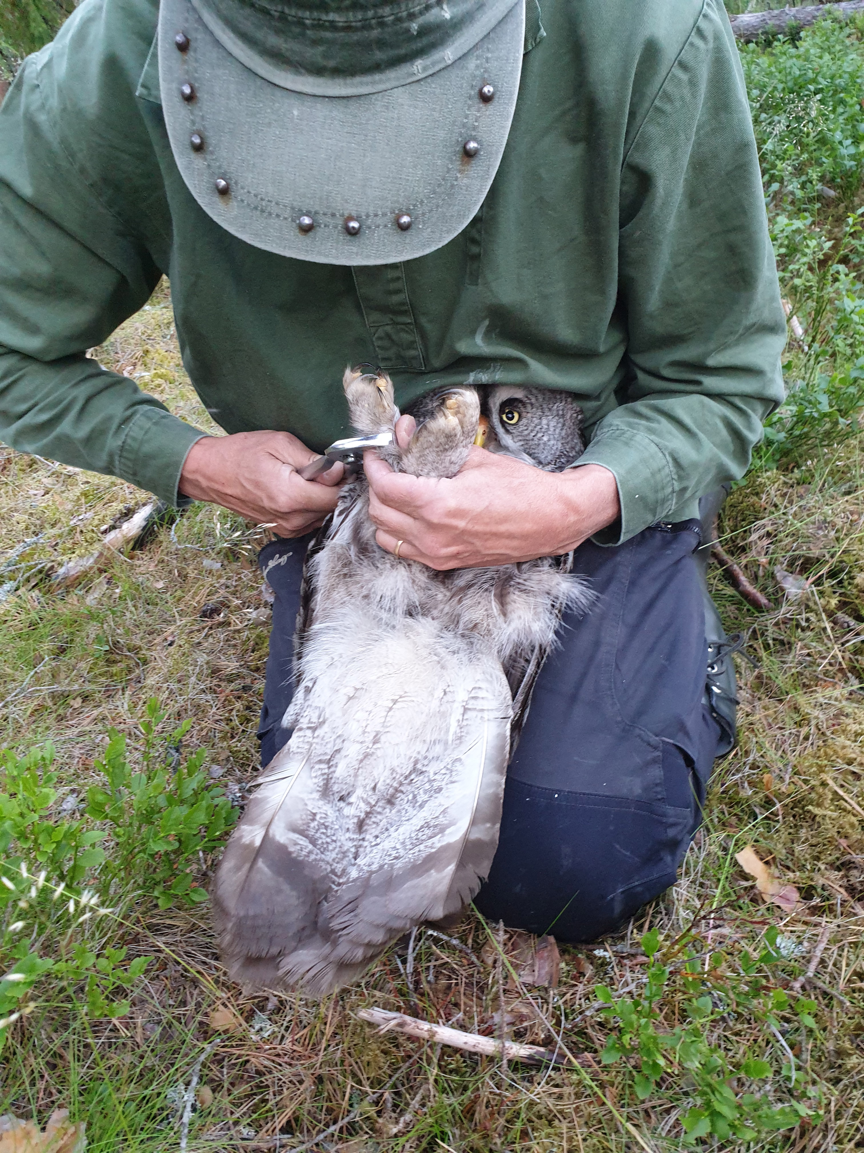 - Beskrivning: Ringmärkning av vuxen lappuggla