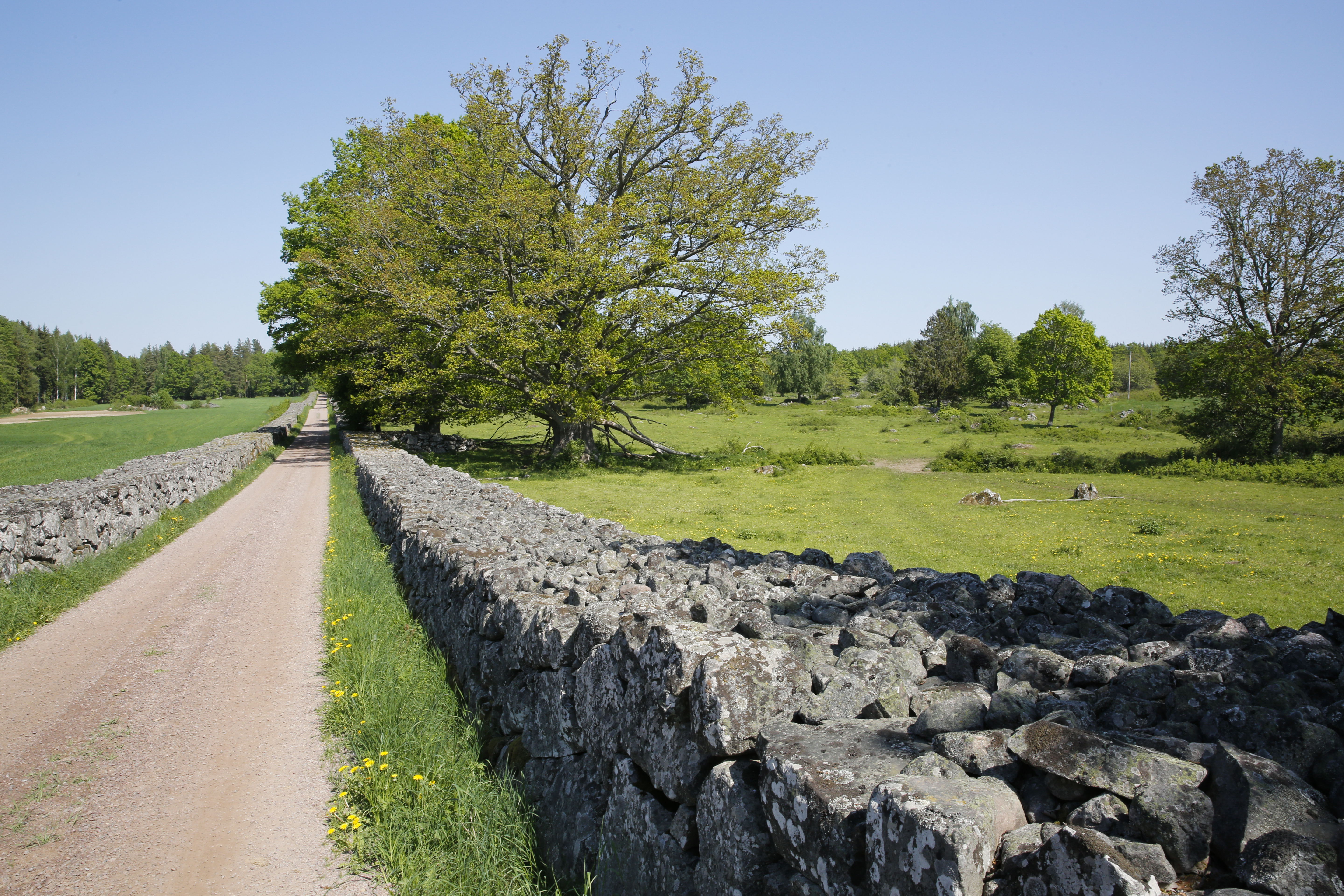 - Beskrivning: Enorma stengärdsgårdar och ekar vid Barnebo, Ekopark Hornsö.