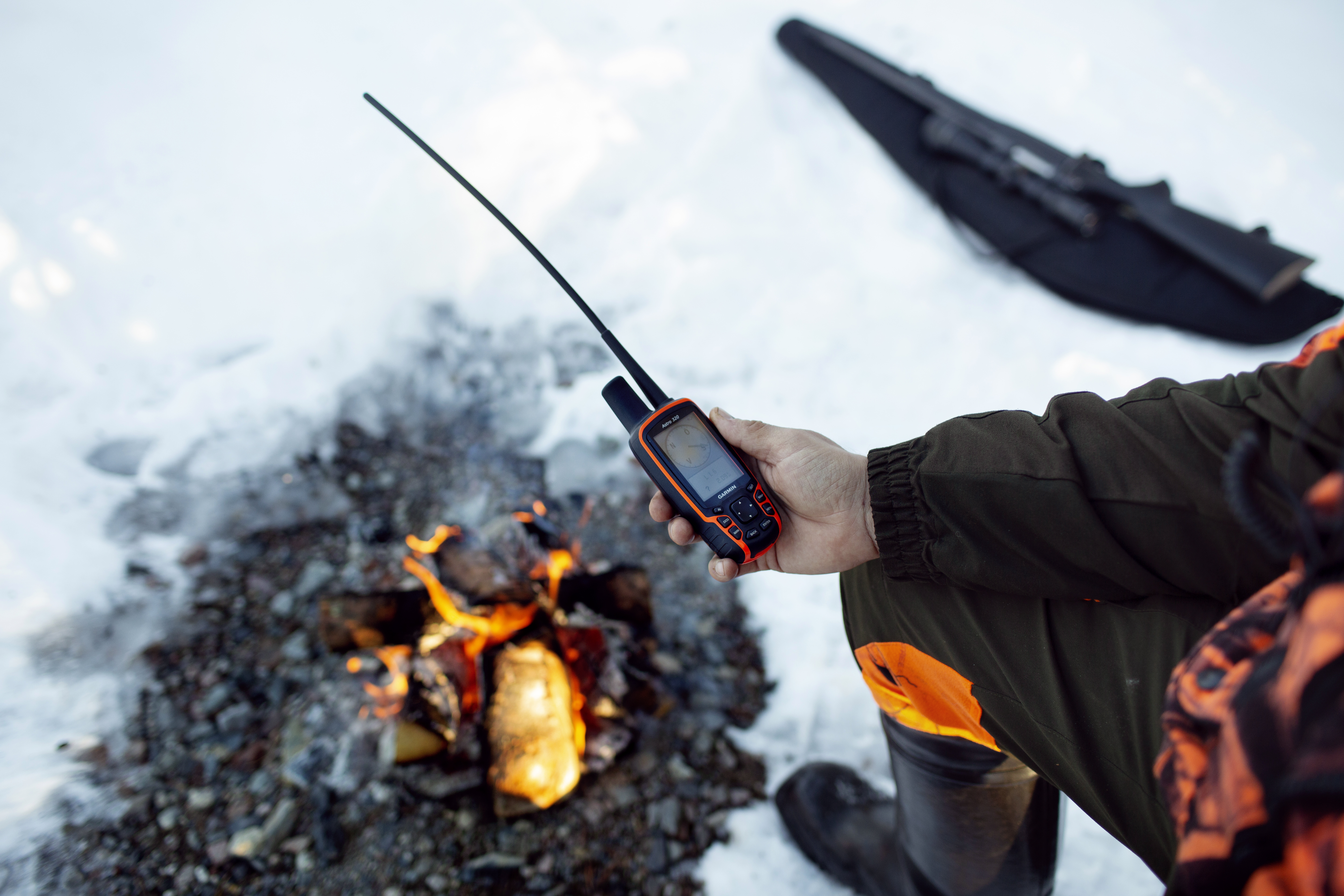 - Beskrivning: Jägare vid eld, gps, utrustning