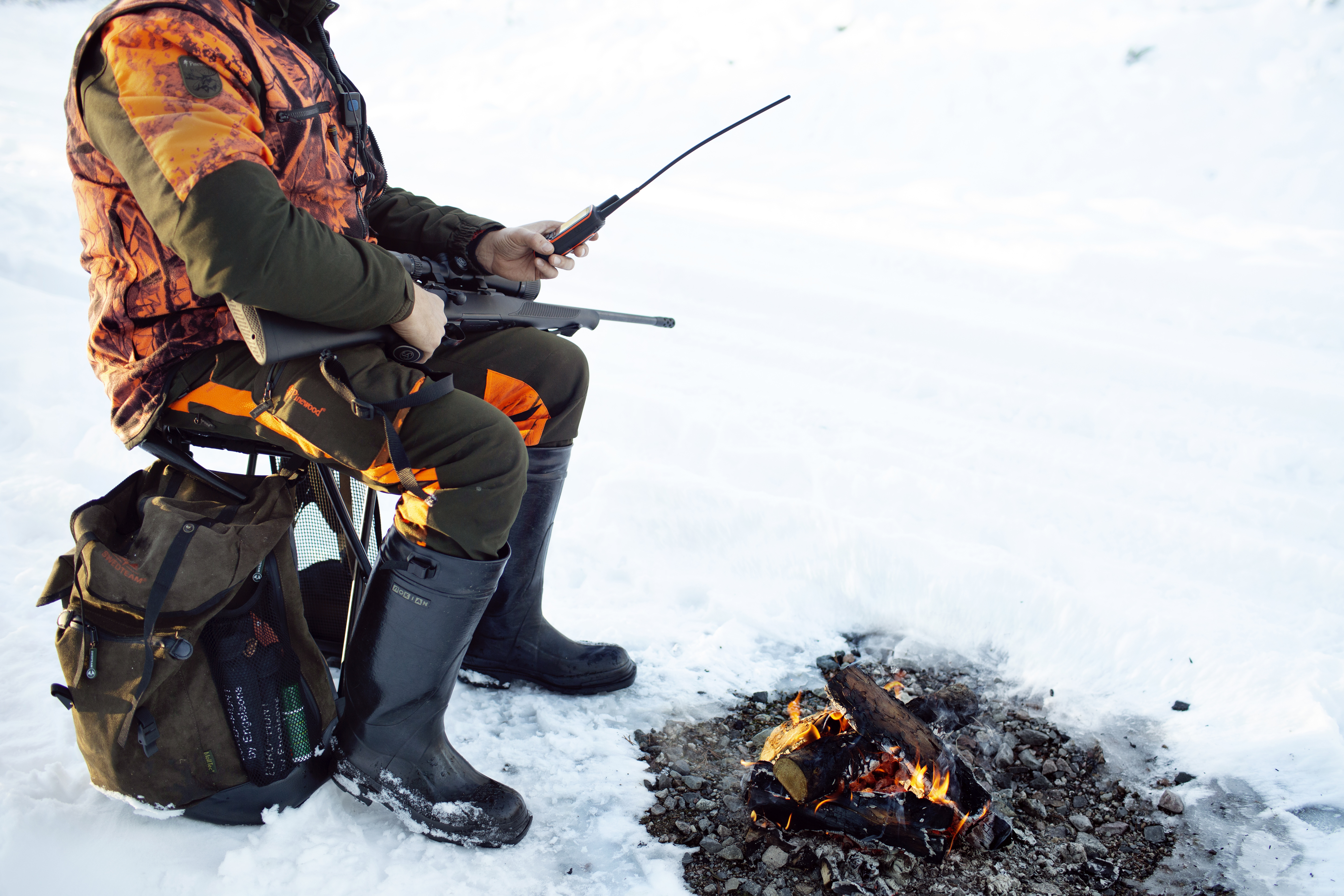 - Beskrivning: Jägare vid eld, gps, utrustning