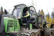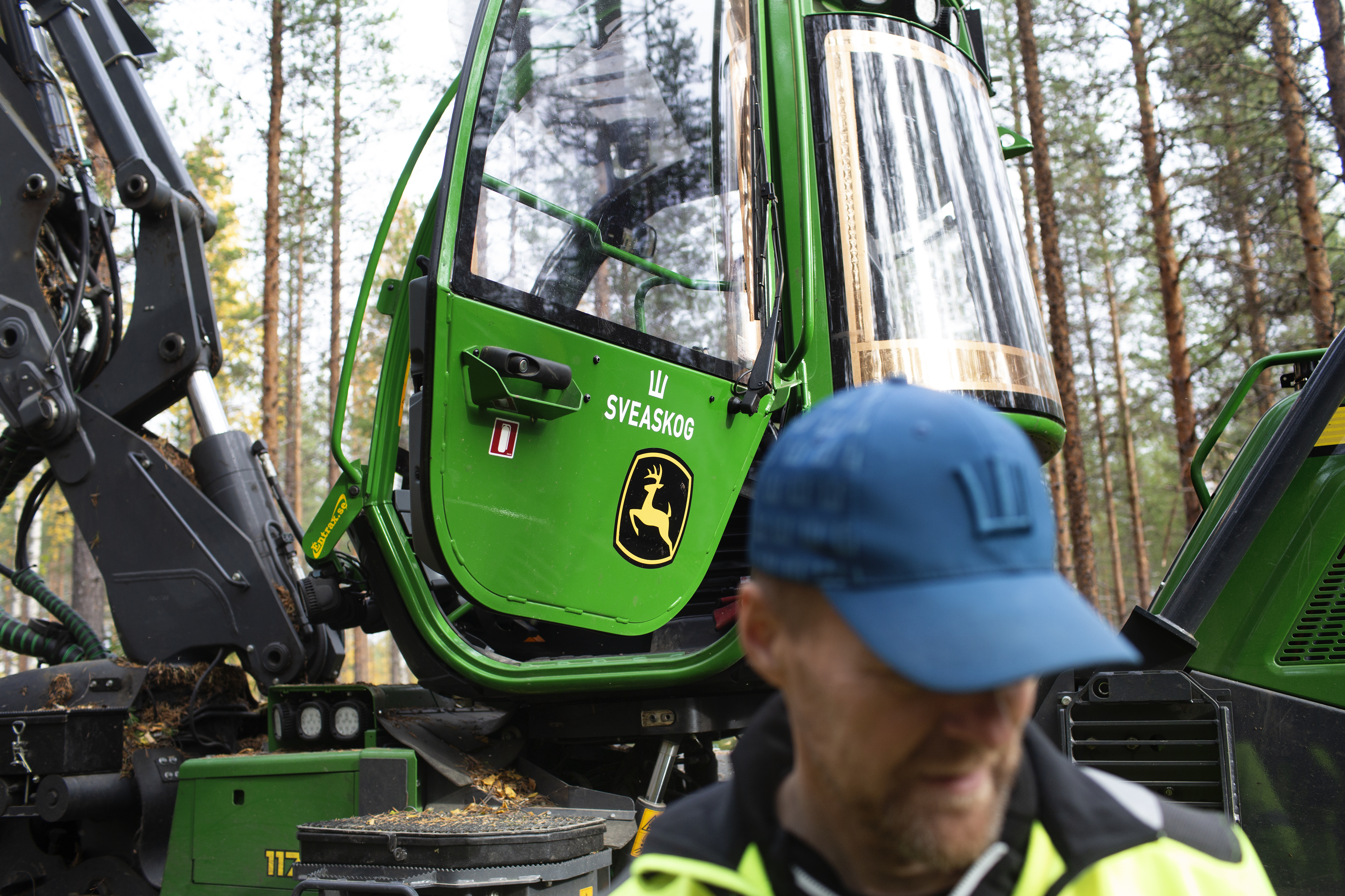 • Beskrivning: Ragnar Lundström, skogsmaskin, Sveaskog logotyp keps
