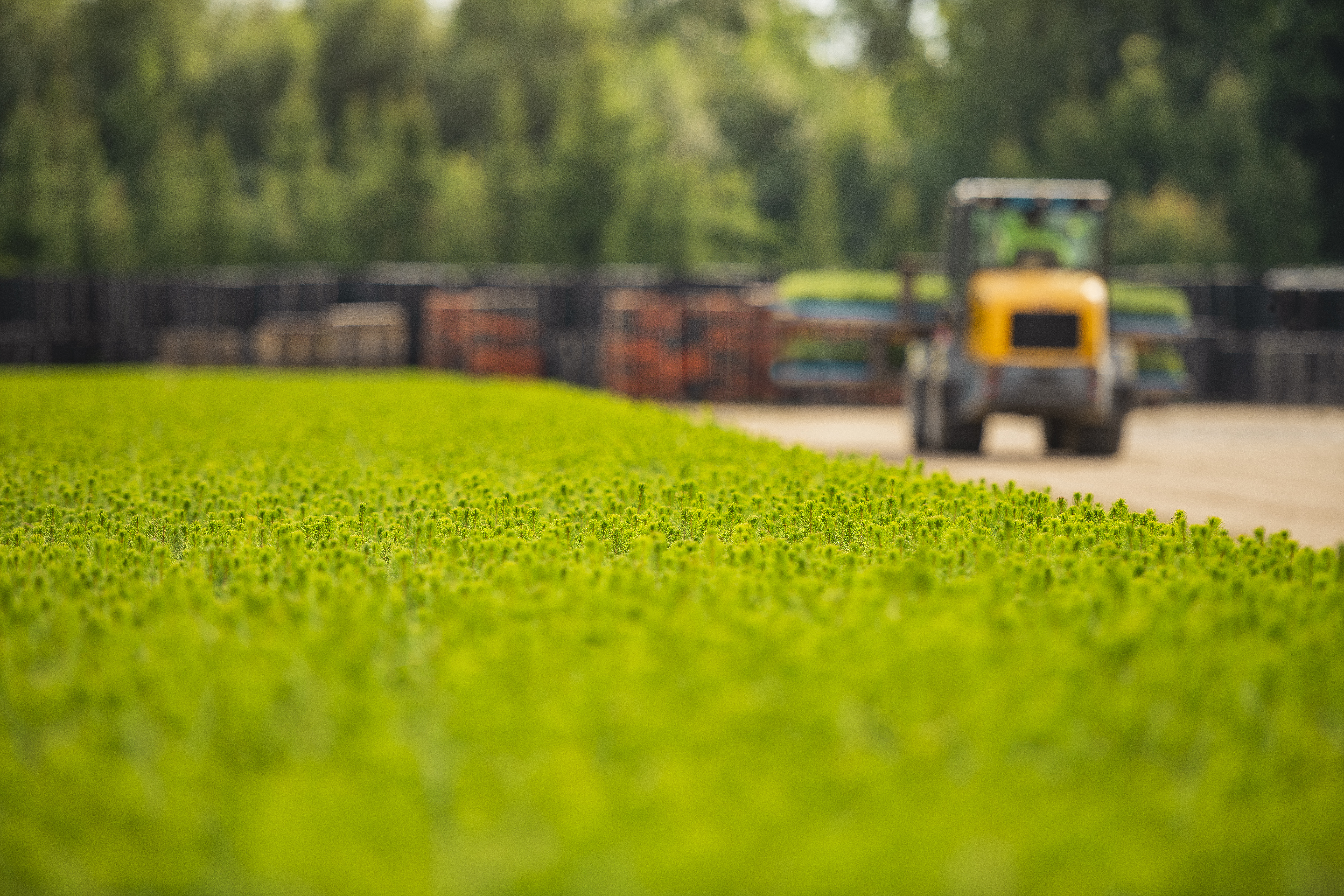 • Beskrivning: Svenska Skogsplantor, plantskola, truck, lastning av plantor
