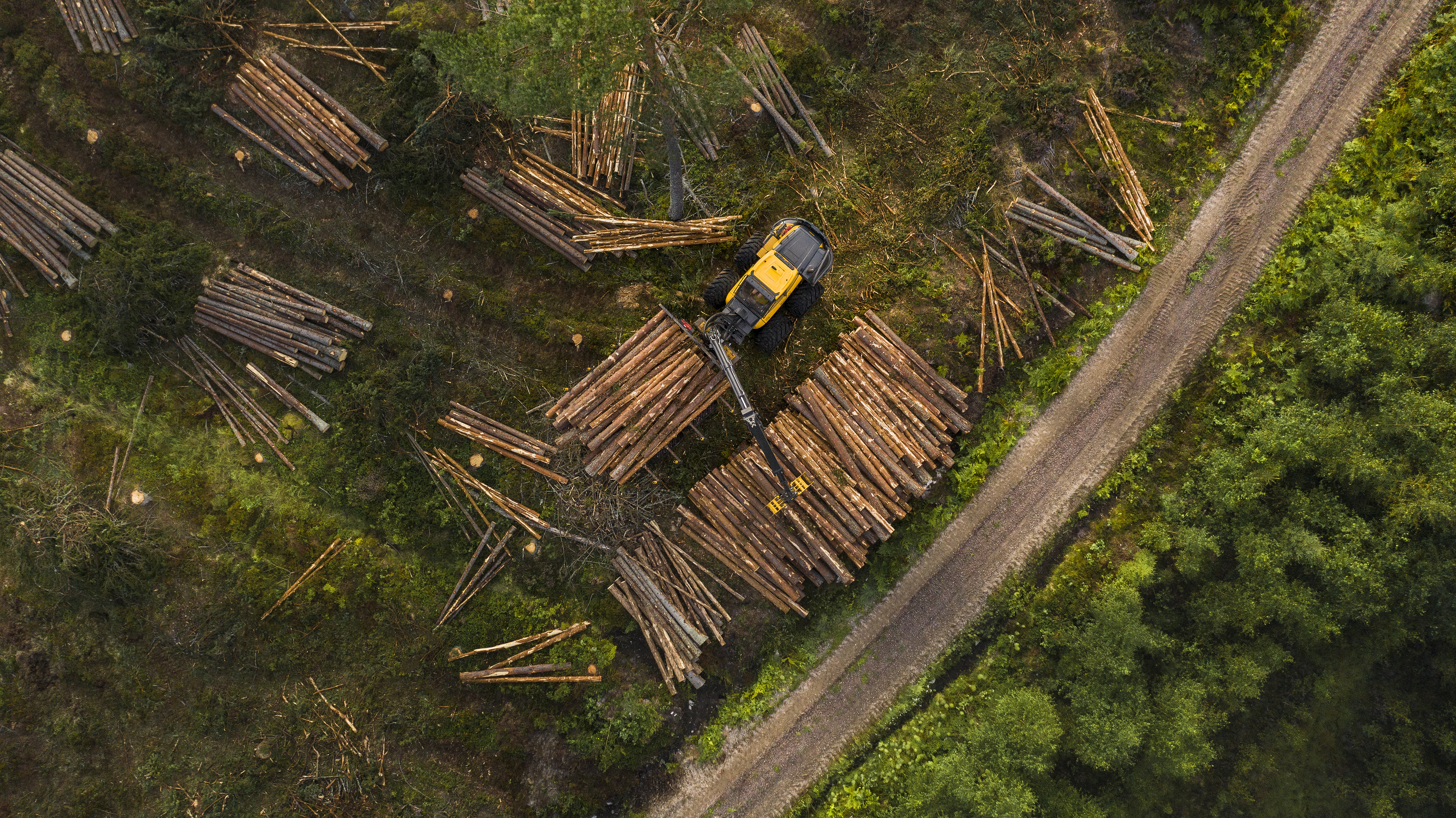 - Beskrivning: Skogsmaskin, avverkning, skördare, timmer