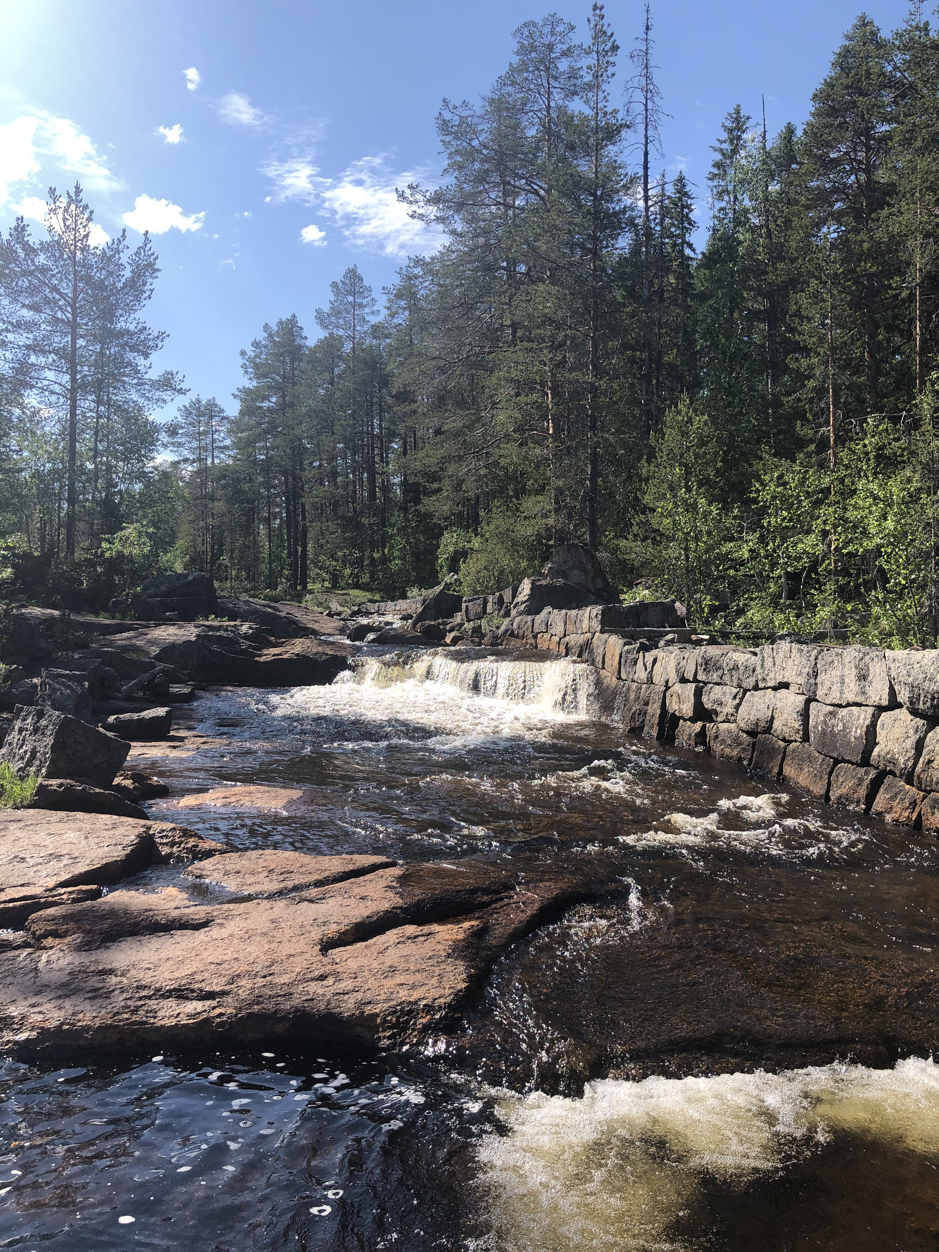 - Beskrivning: Flottningsränna vid ekoparksbänken i Ekopark Jovan