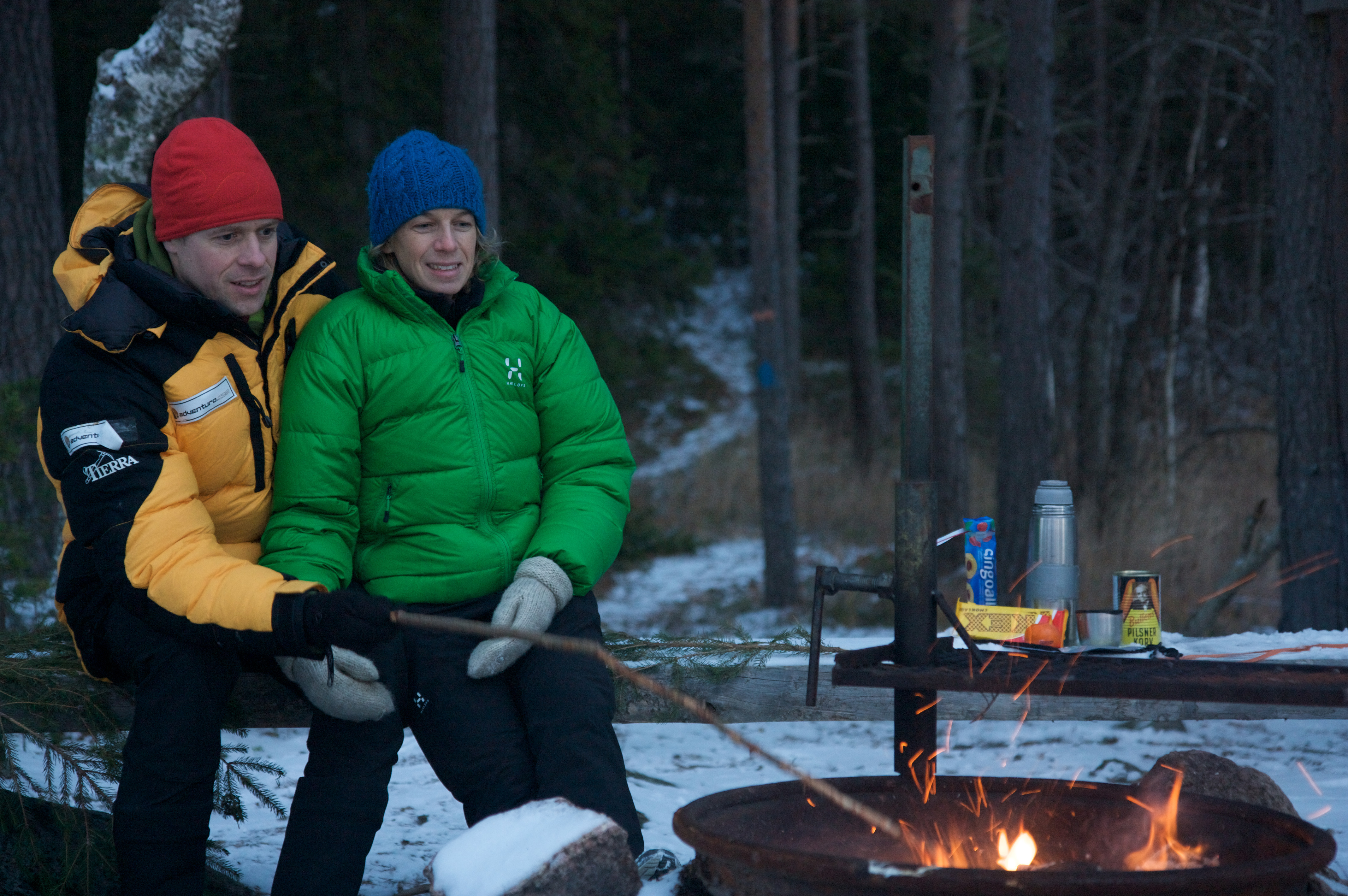 - Beskrivning: Par som grillar ute vid eld, Ekopark Norra Vätterns skärgård
