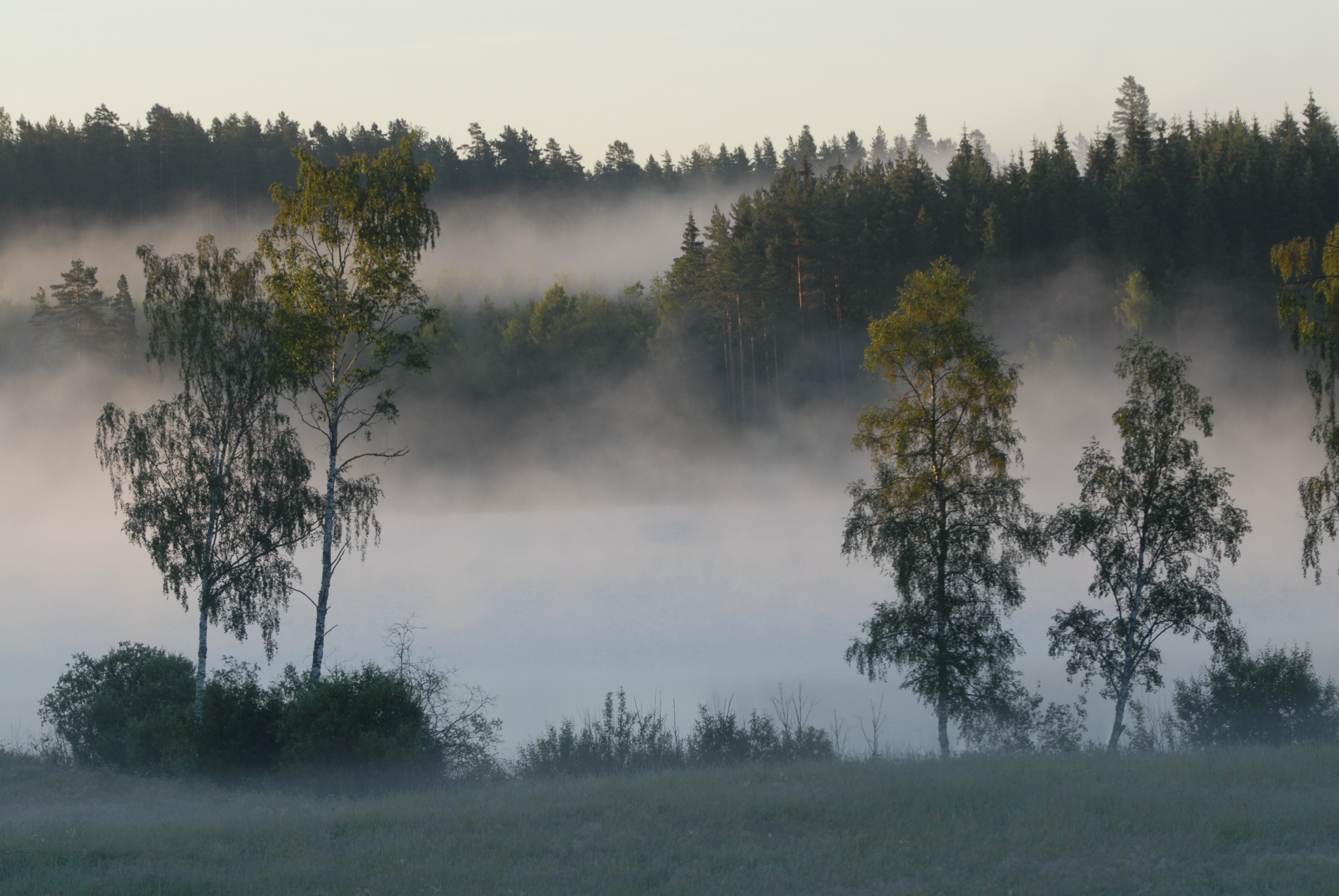 - Beskrivning: Dimma över sjölandskap