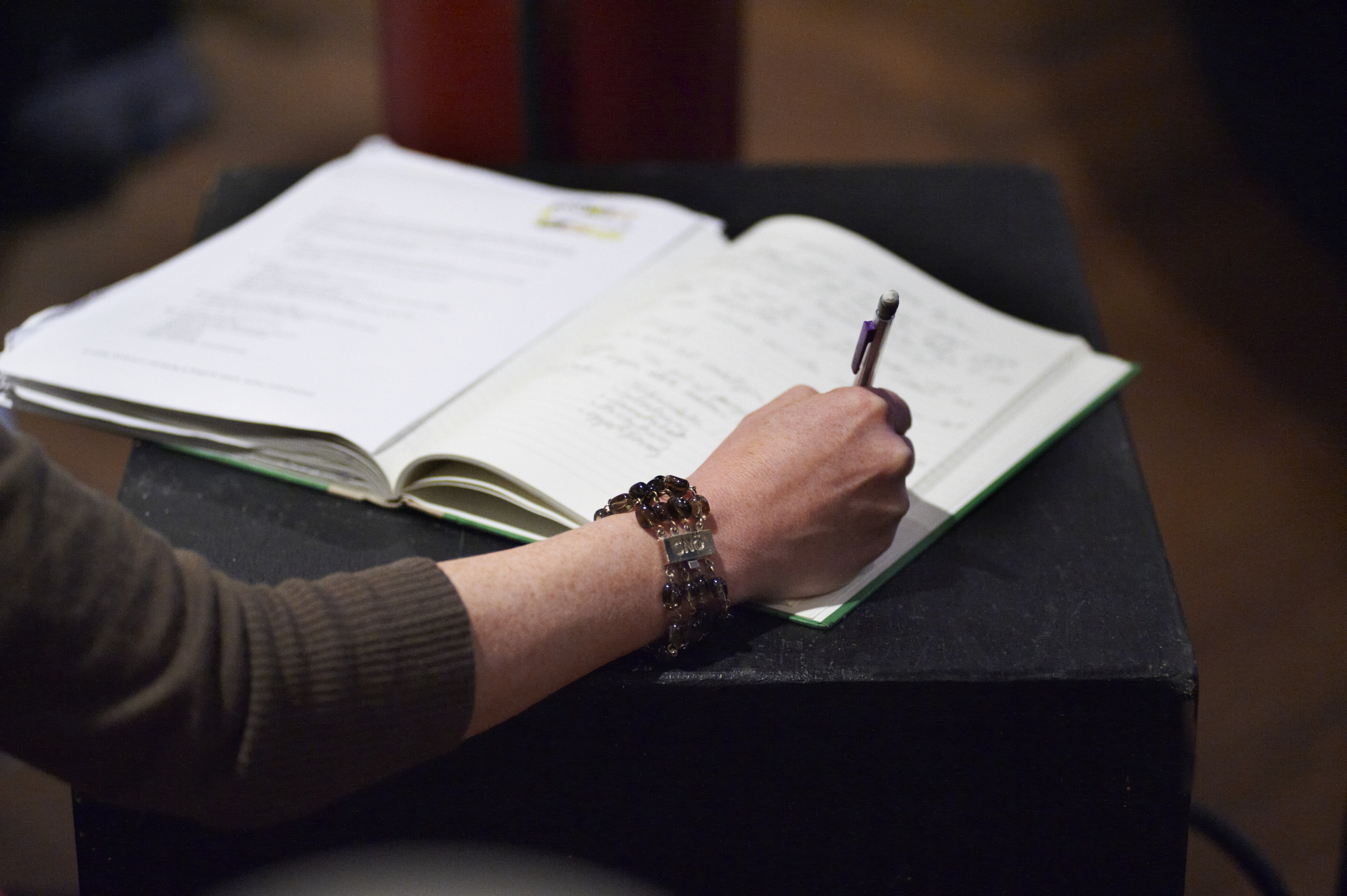 - Beskrivning: Workshop i problemlösning, skogligt kvinnligt nätverk. Hand som undertecknar, skriver, signatur, penna, papper.