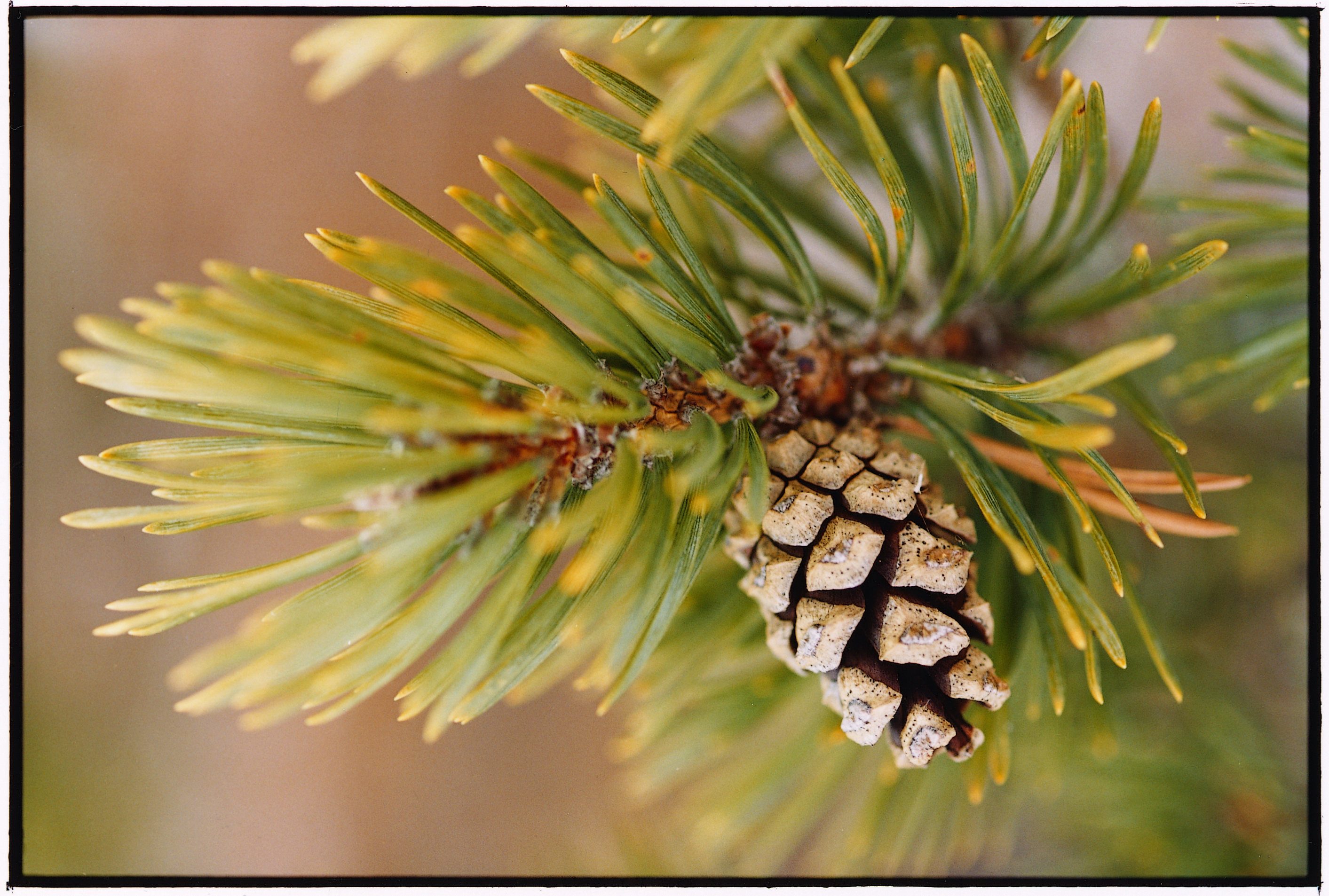 • Beskrivning: Närbild på tallkotte, tallkvist
