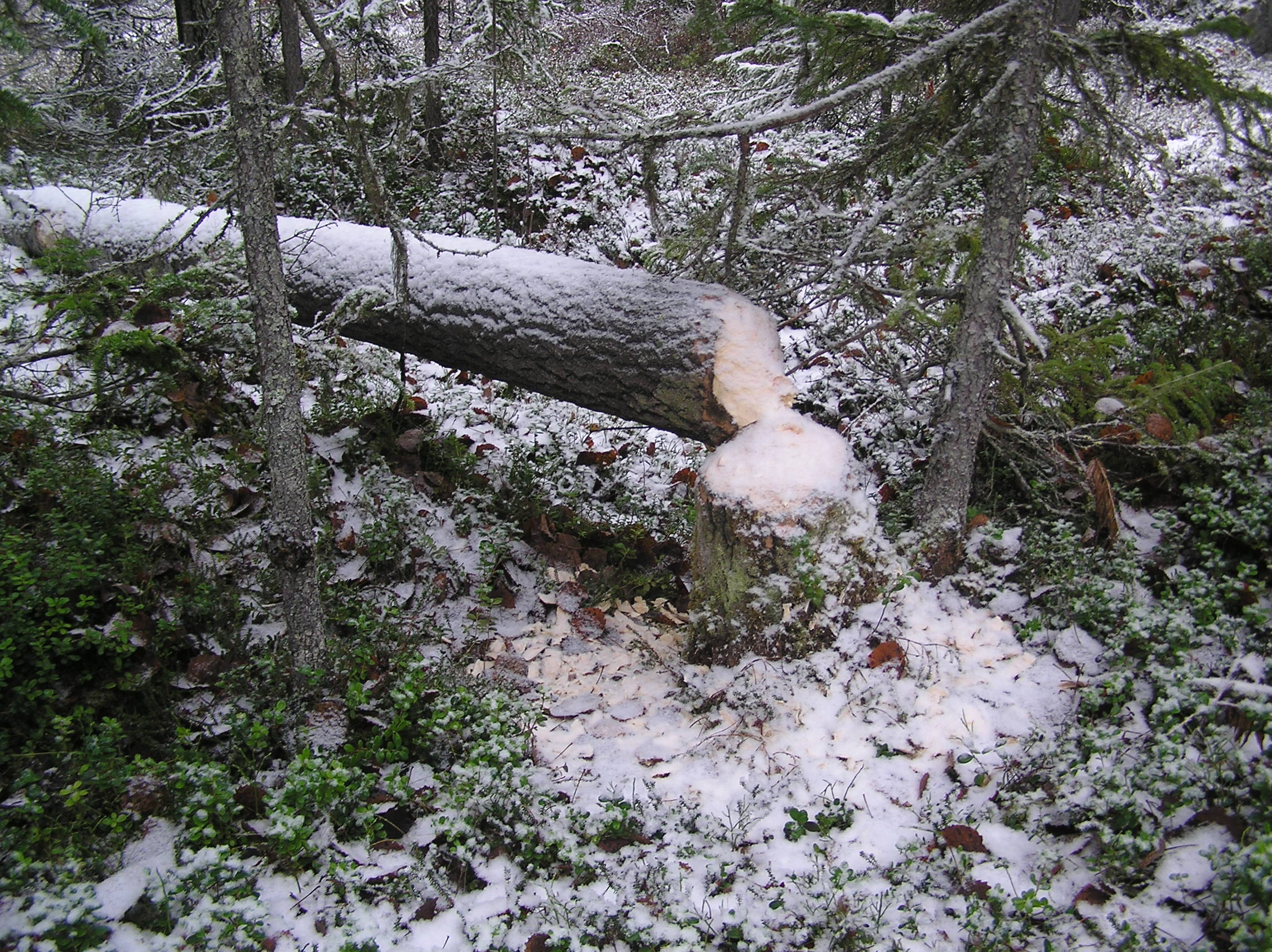 - Beskrivning: Bäver har avverkat skog, Käringträskbäcken