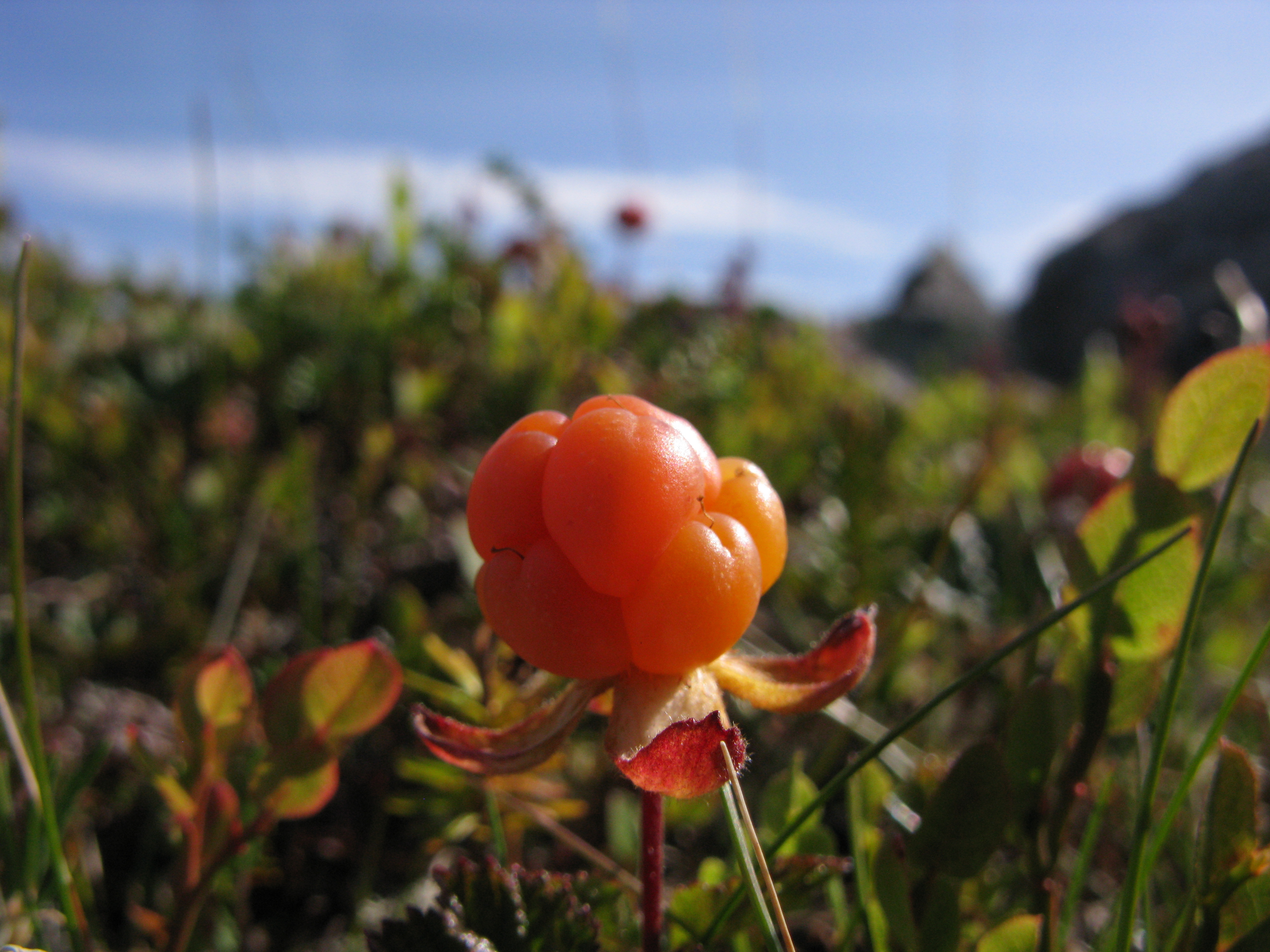 - Beskrivning: Solmogna hjortron på myrkanten.