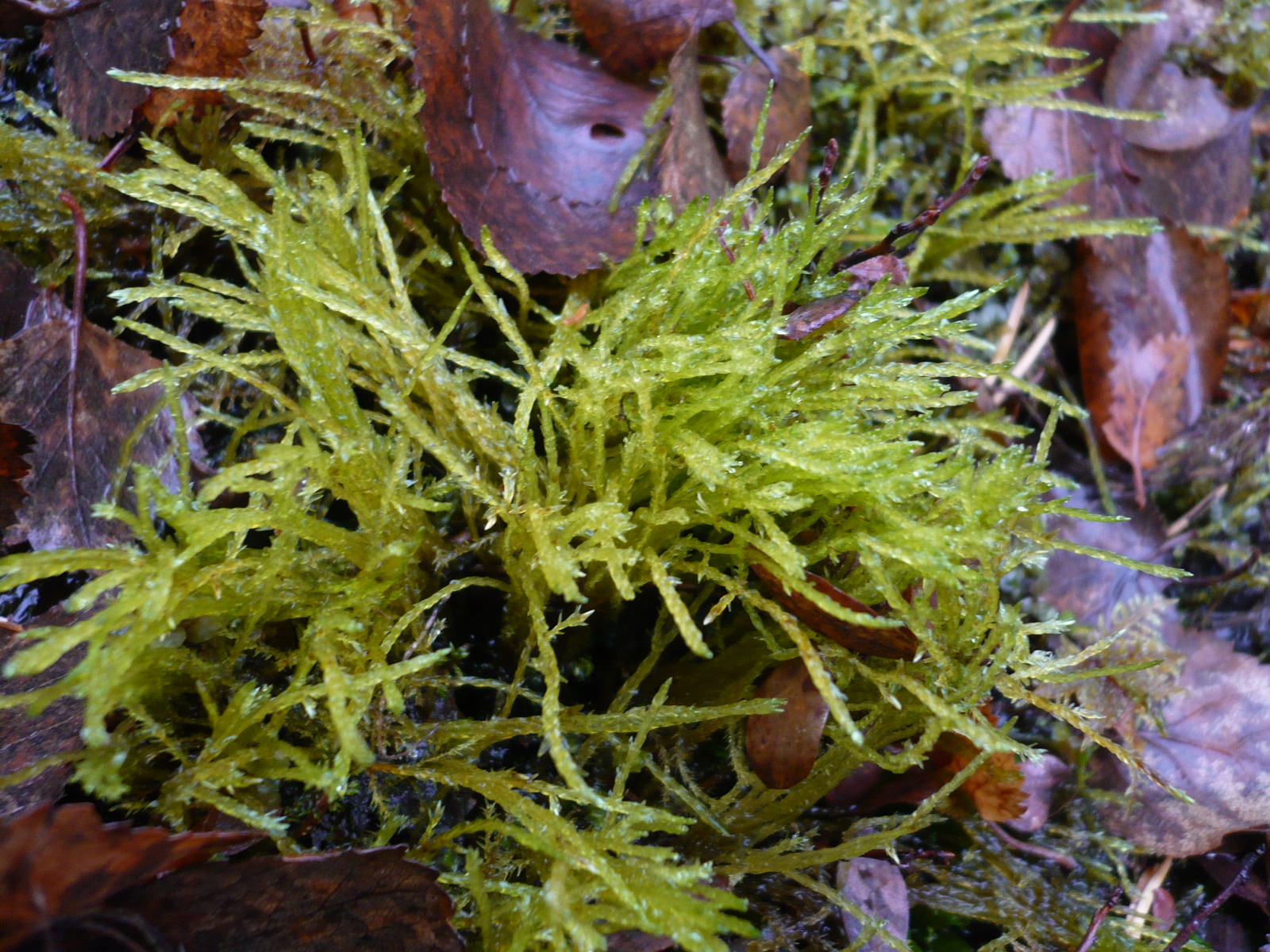 - Beskrivning: Mossa bland björklöv