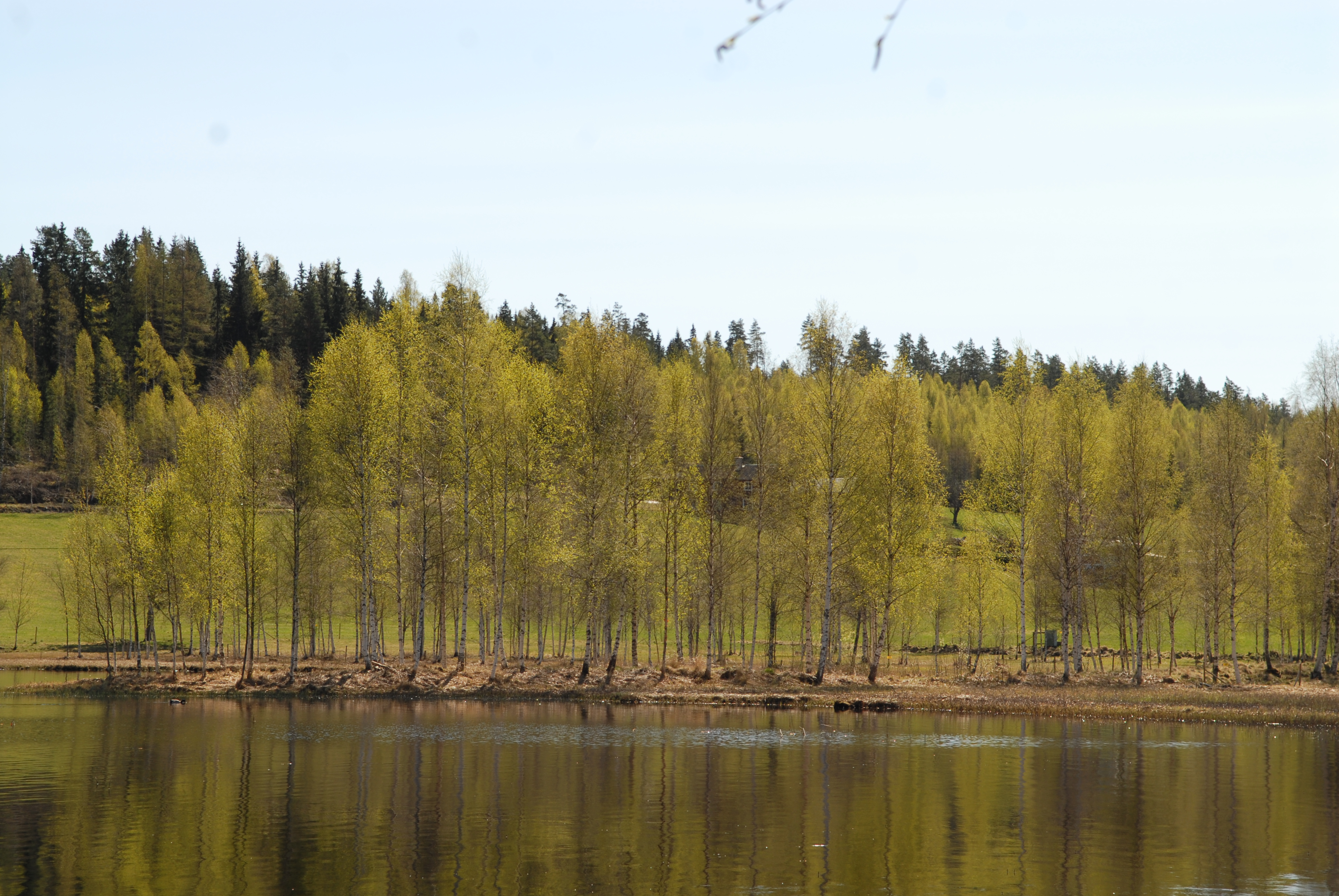 • Beskrivning: Lövträd i sjölandskap, vår, lövsprickning