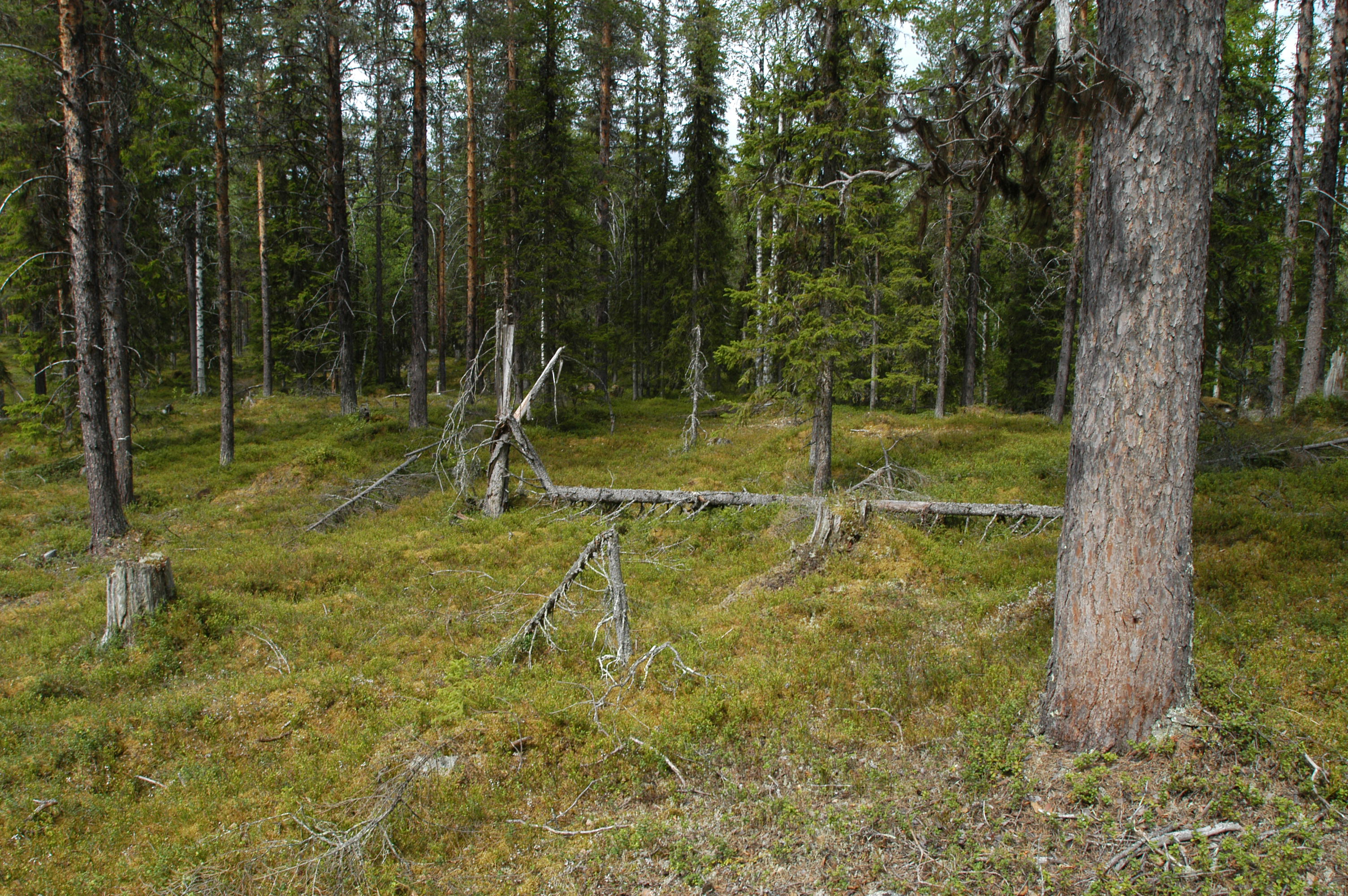 - Beskrivning: Gammal tallskog, död ved, stubbar