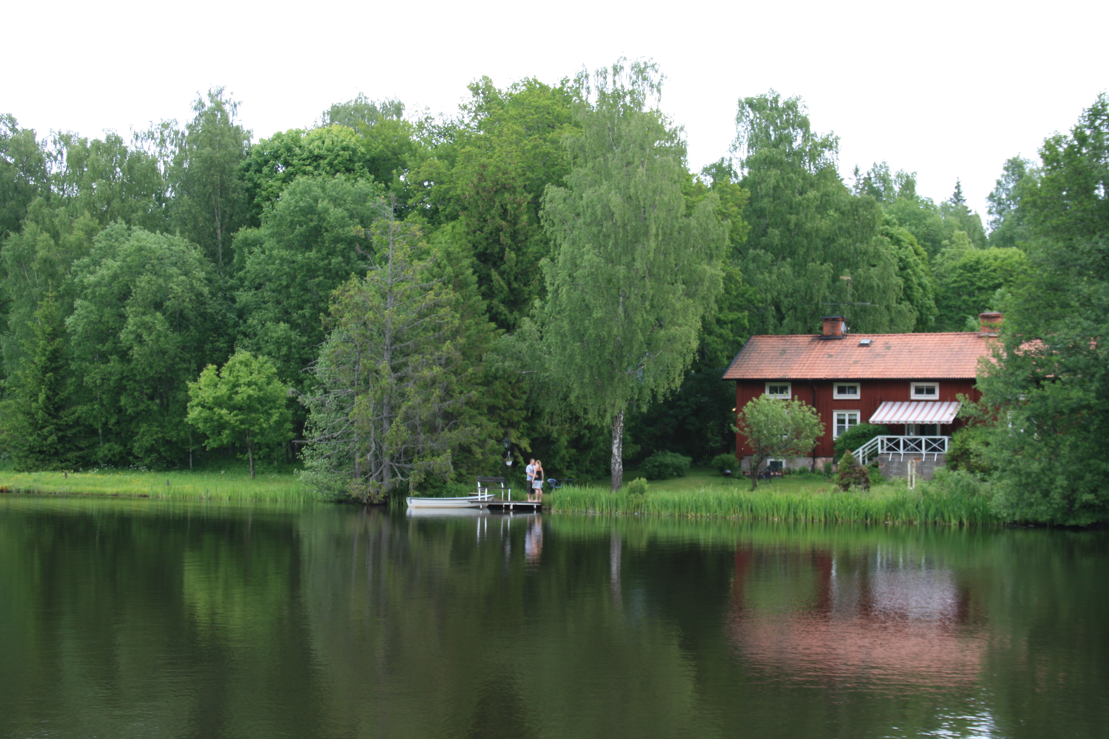 - Beskrivning: Par som kramas på en brygga vid Hjälmare kanal