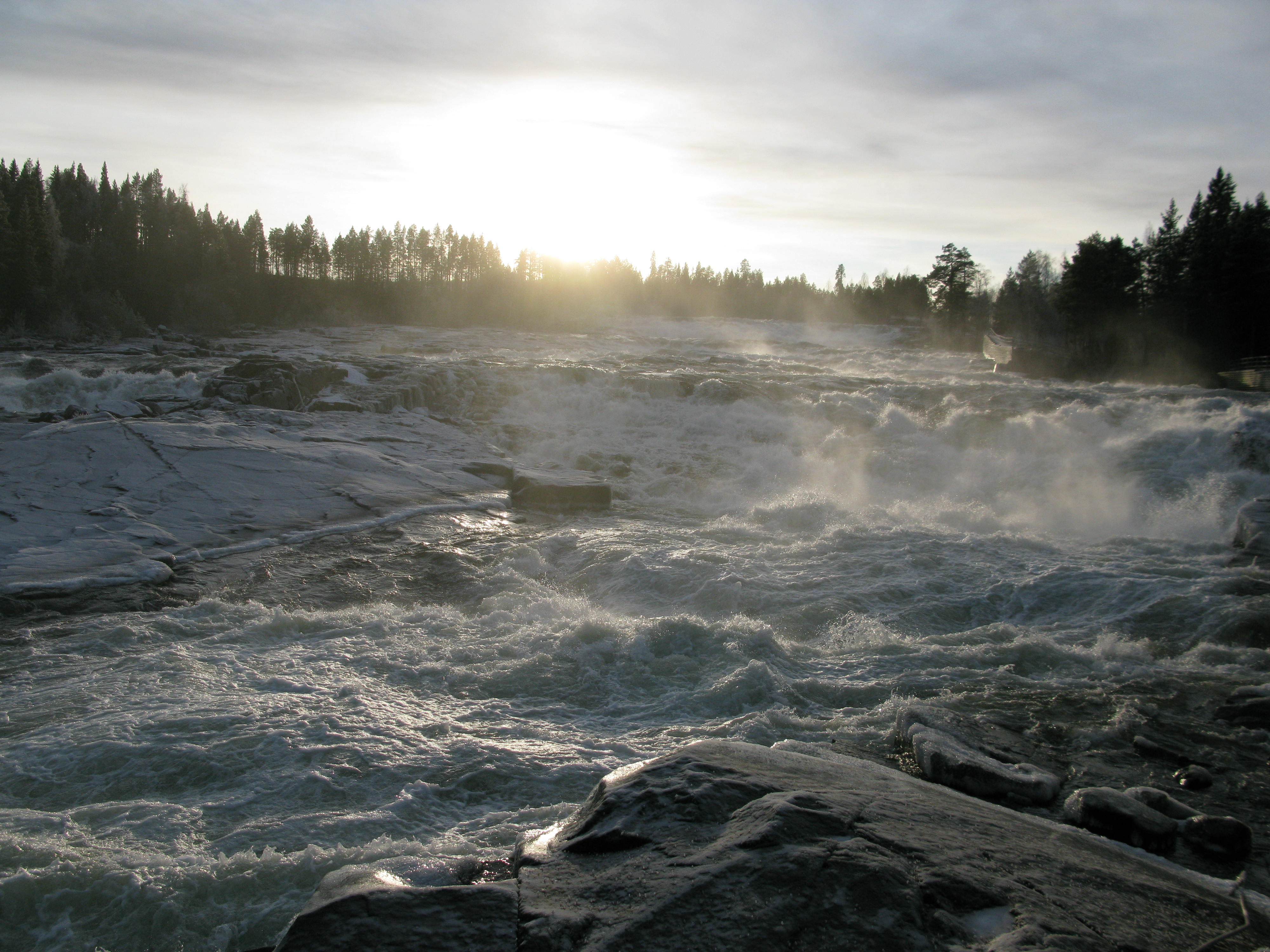 - Beskrivning: Vinterälv i motljus, Storforsen