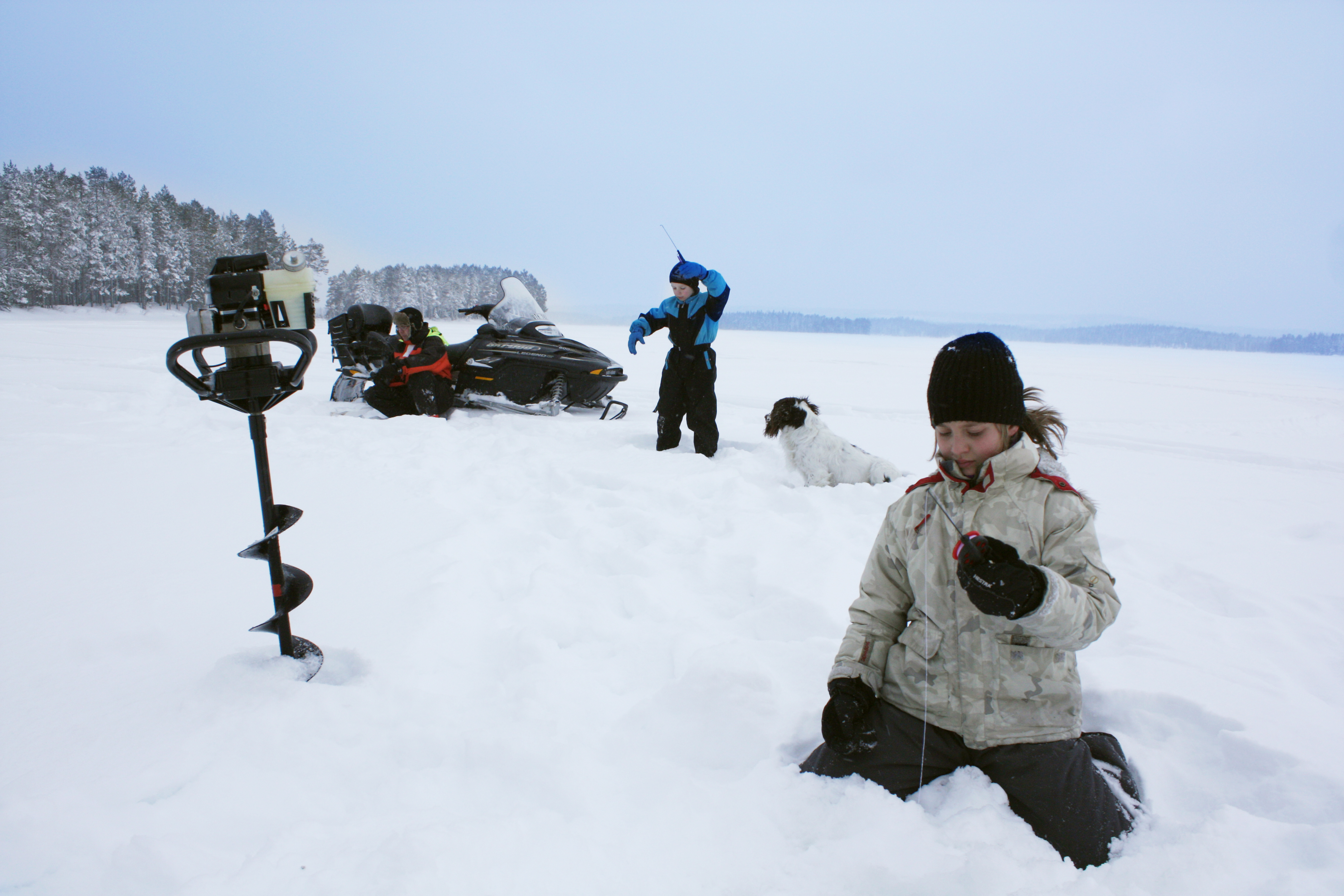 - Beskrivning: Pimpelfiske, isfiske, snöskoter, skoter, Hovlössjön, vinter