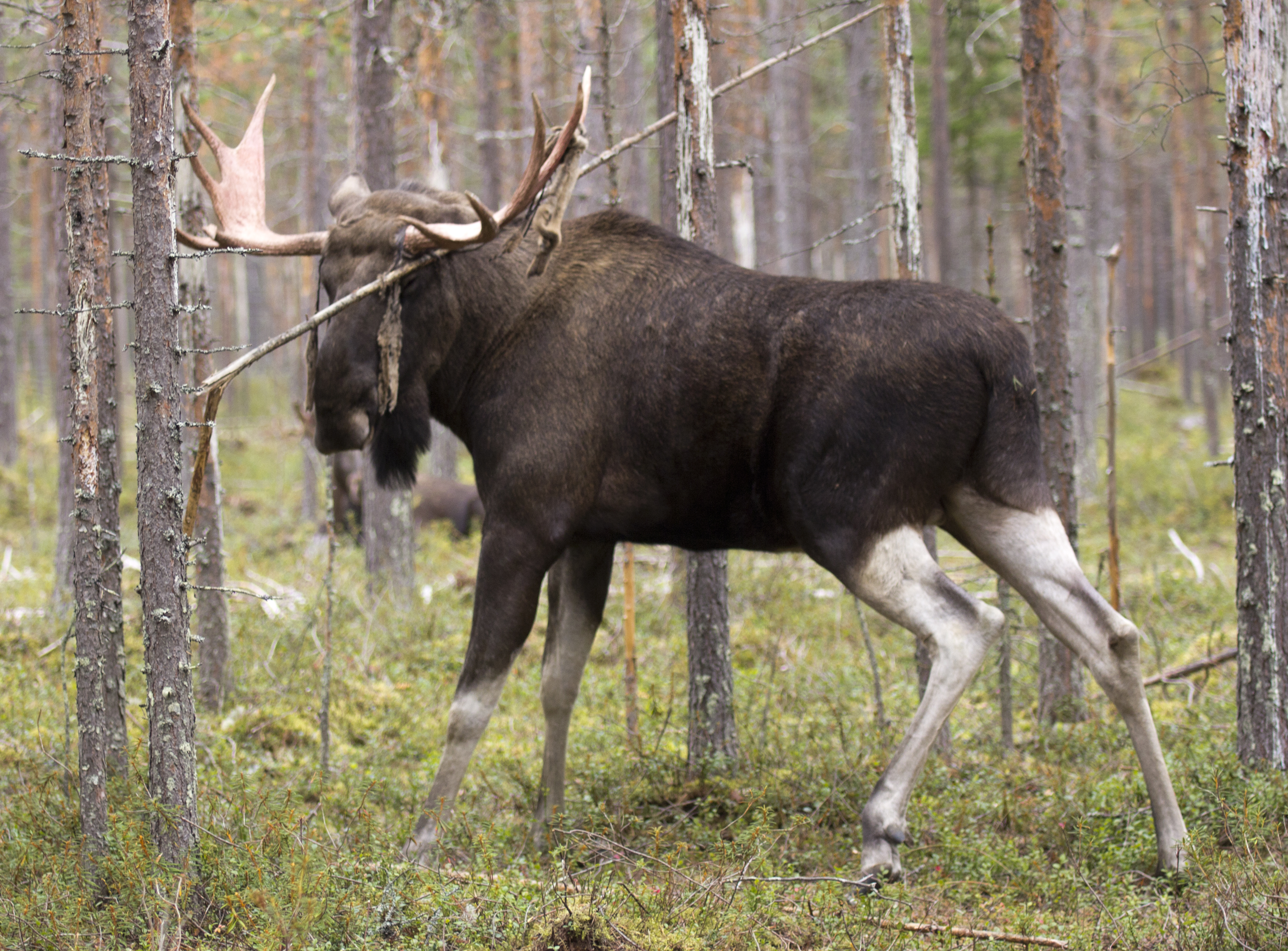 - Beskrivning: Älgtjur som fejar hornen och detta är ovanligt att se i det vilda, det pågår några få dagar under hösten, precis innan brunsten