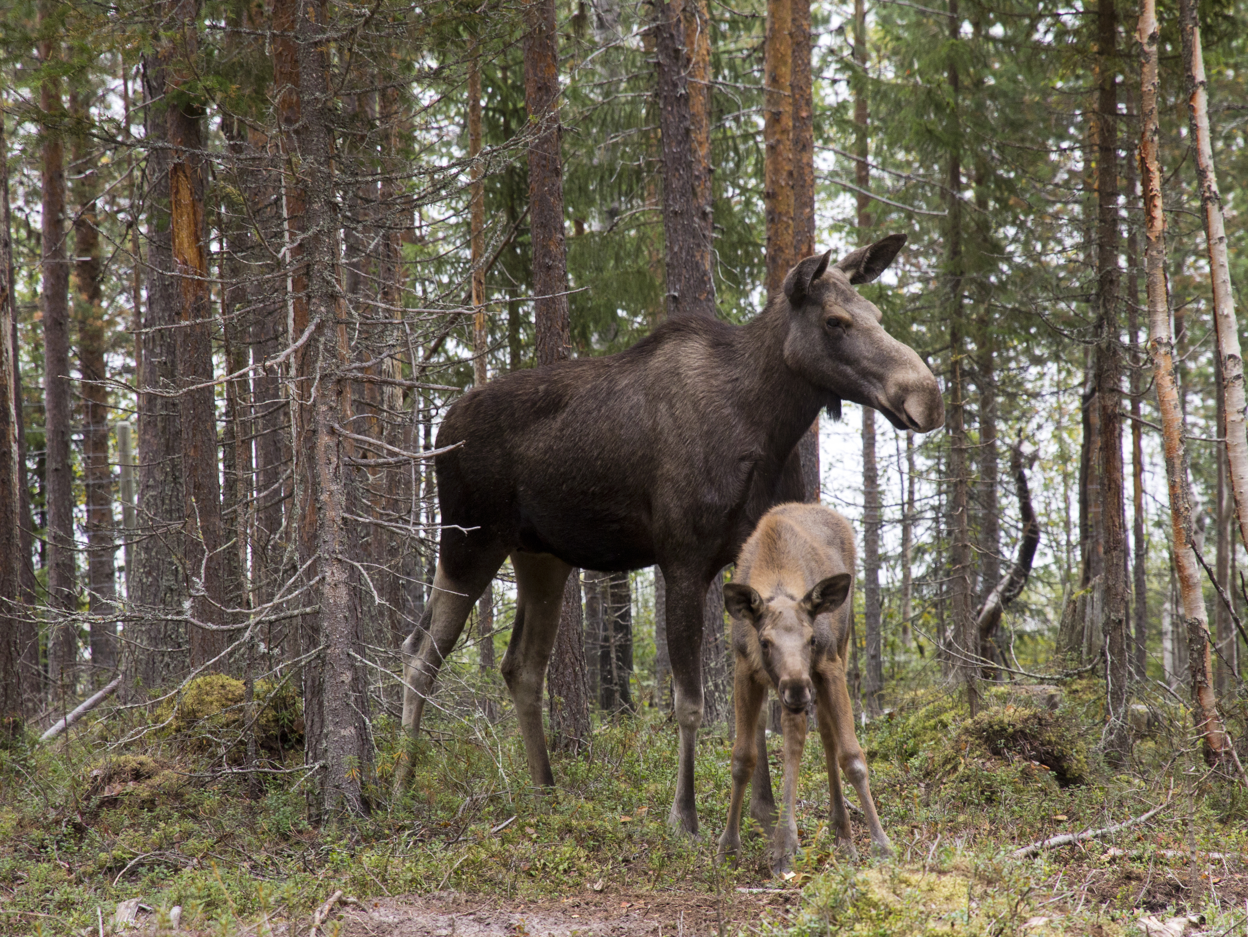 - Beskrivning: Älgko med kalv på Arctic Moose Farm