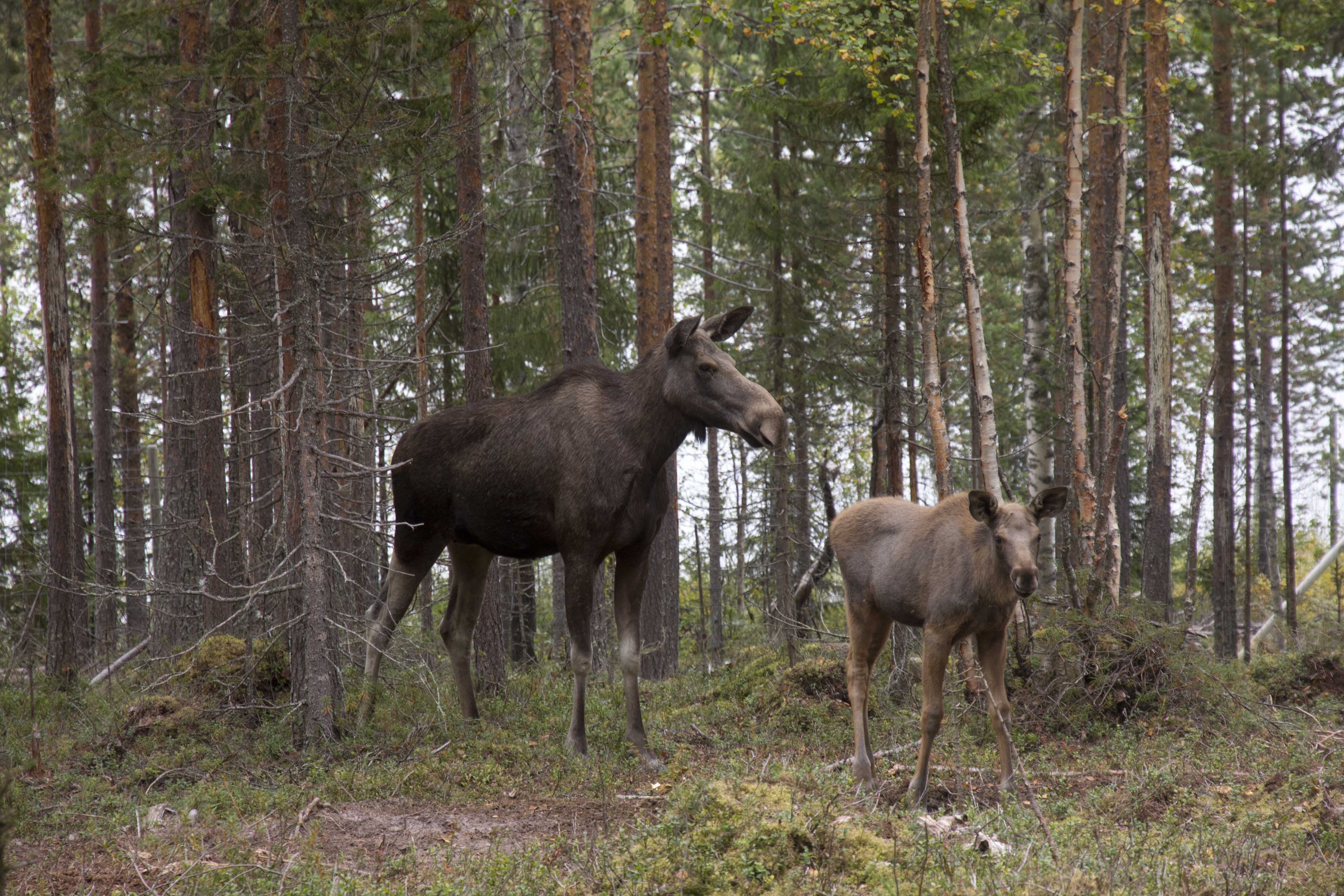 - Beskrivning: Älgko med kalv på Arctic Moose Farm
