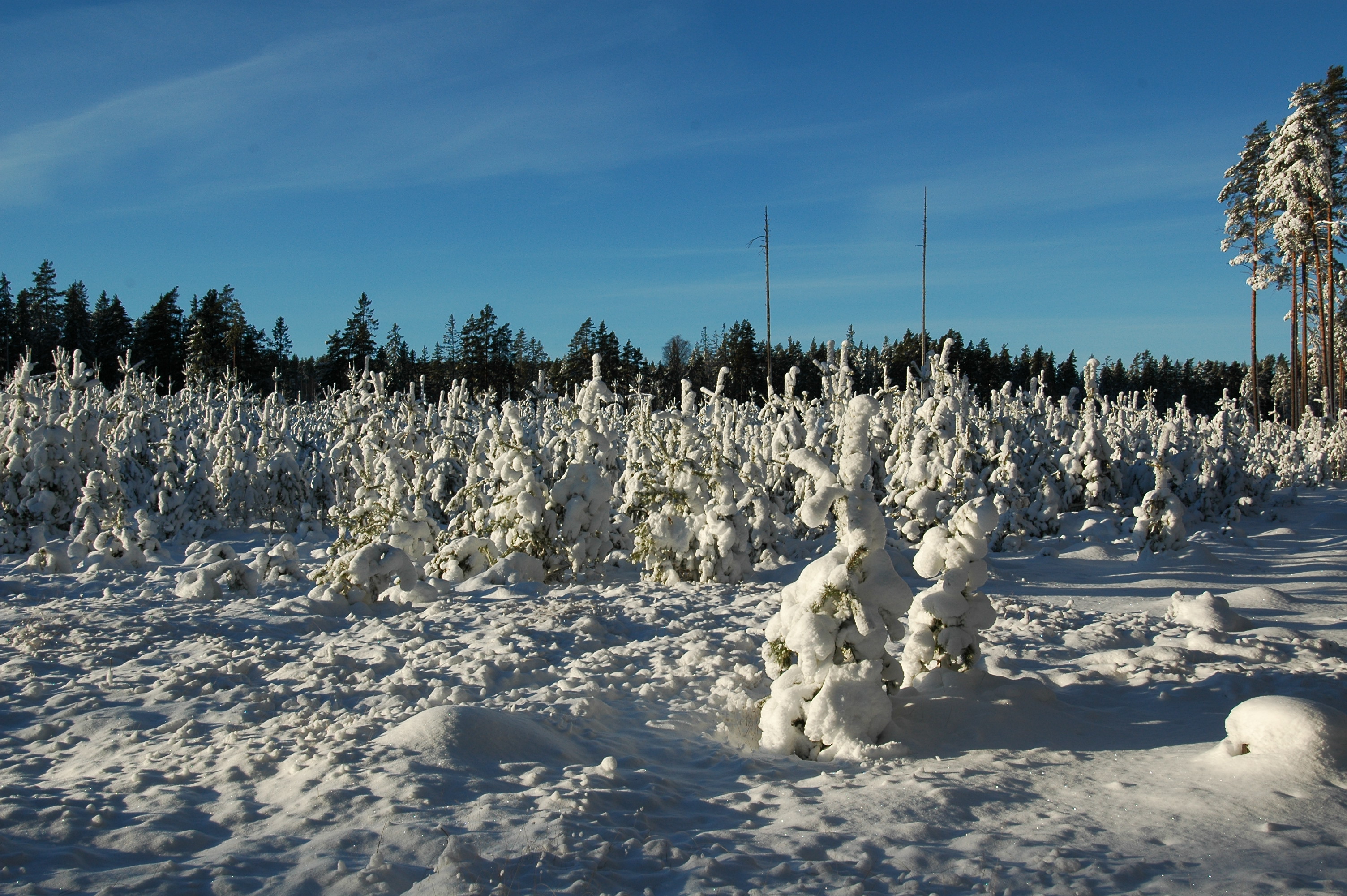• Titel: Plantering och tallskog i vinterskrud
