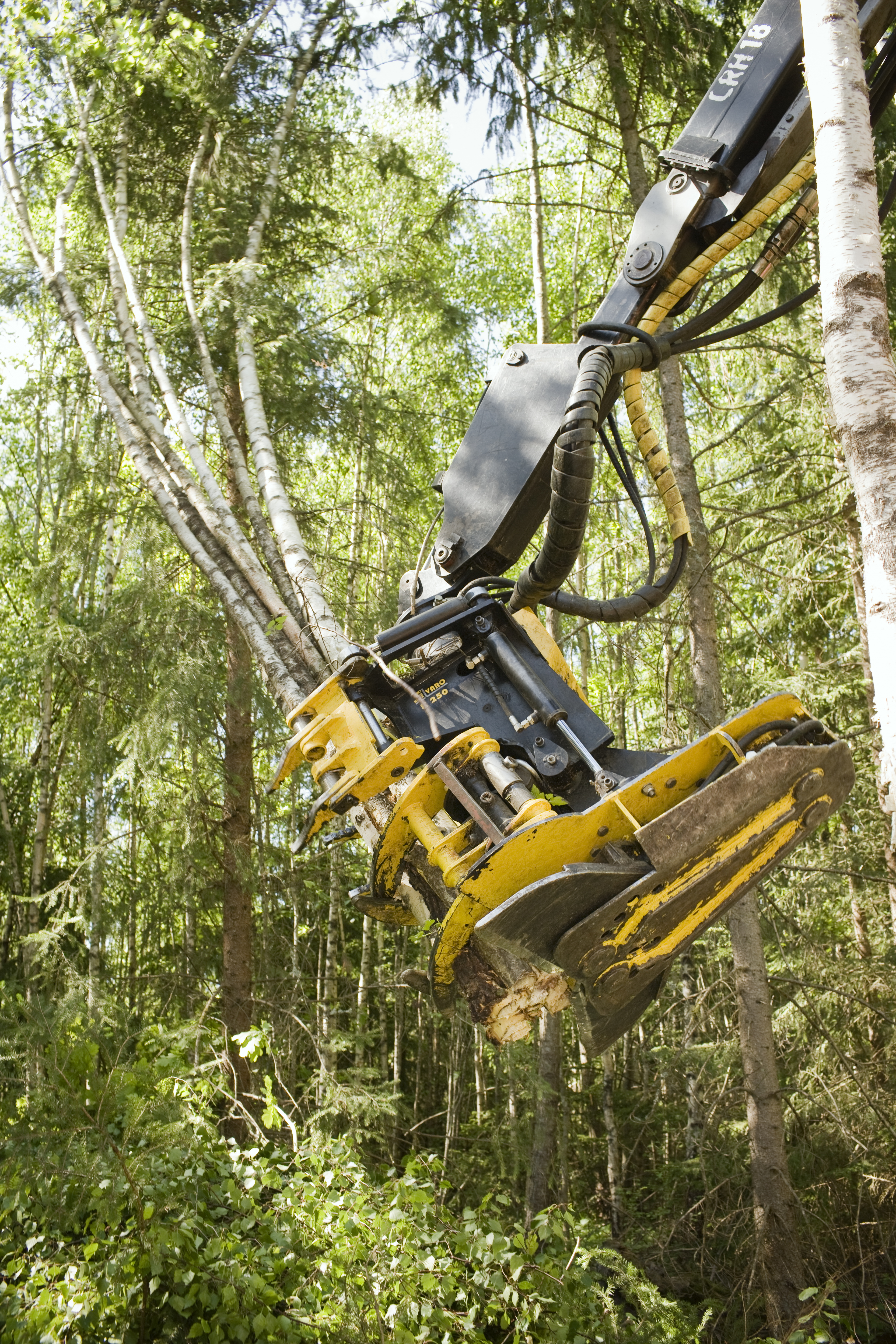 - Beskrivning: När det är många klena stammar används klippaggregatet, man klipper stammarna istället för sågar.