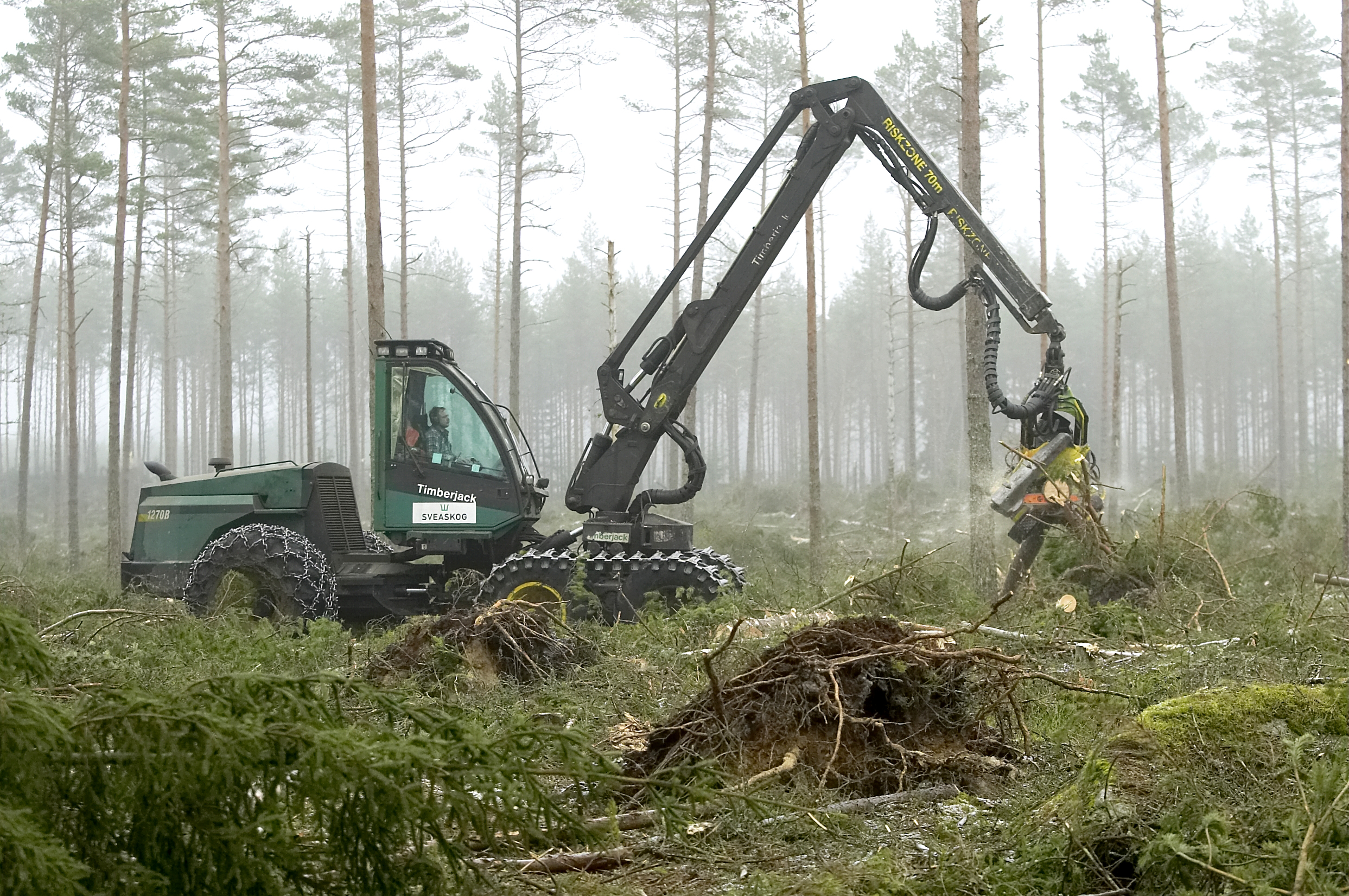 - Beskrivning: Skogsmaskin, Sveaskog, logotyp, Timberjack