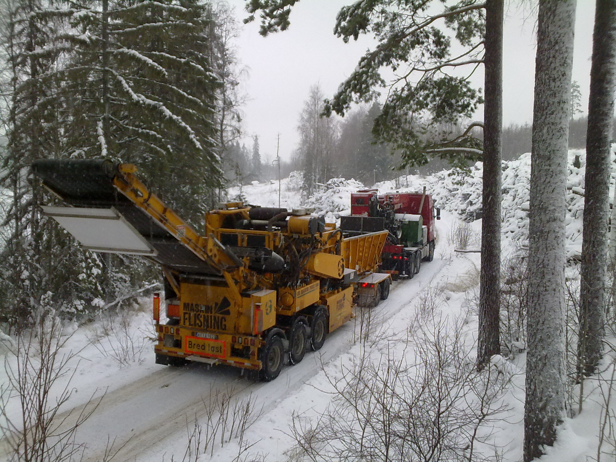 - Beskrivning: Stubbkrossning, stubbrytning, flis, biobränsle