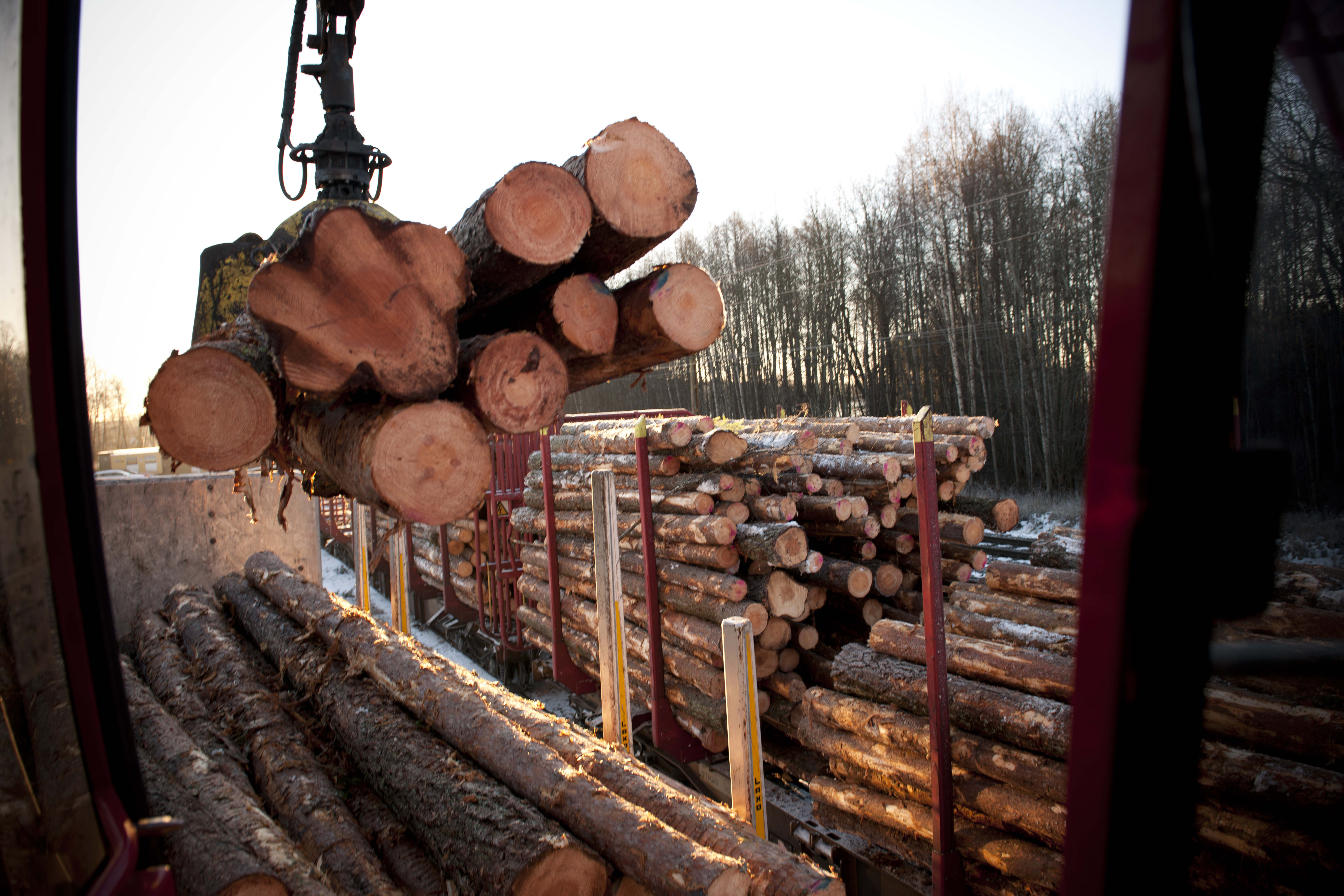- Beskrivning: Virkestransport till tåg, timmer, lastning Timmerlastning Hasselfors 16 nov 2010