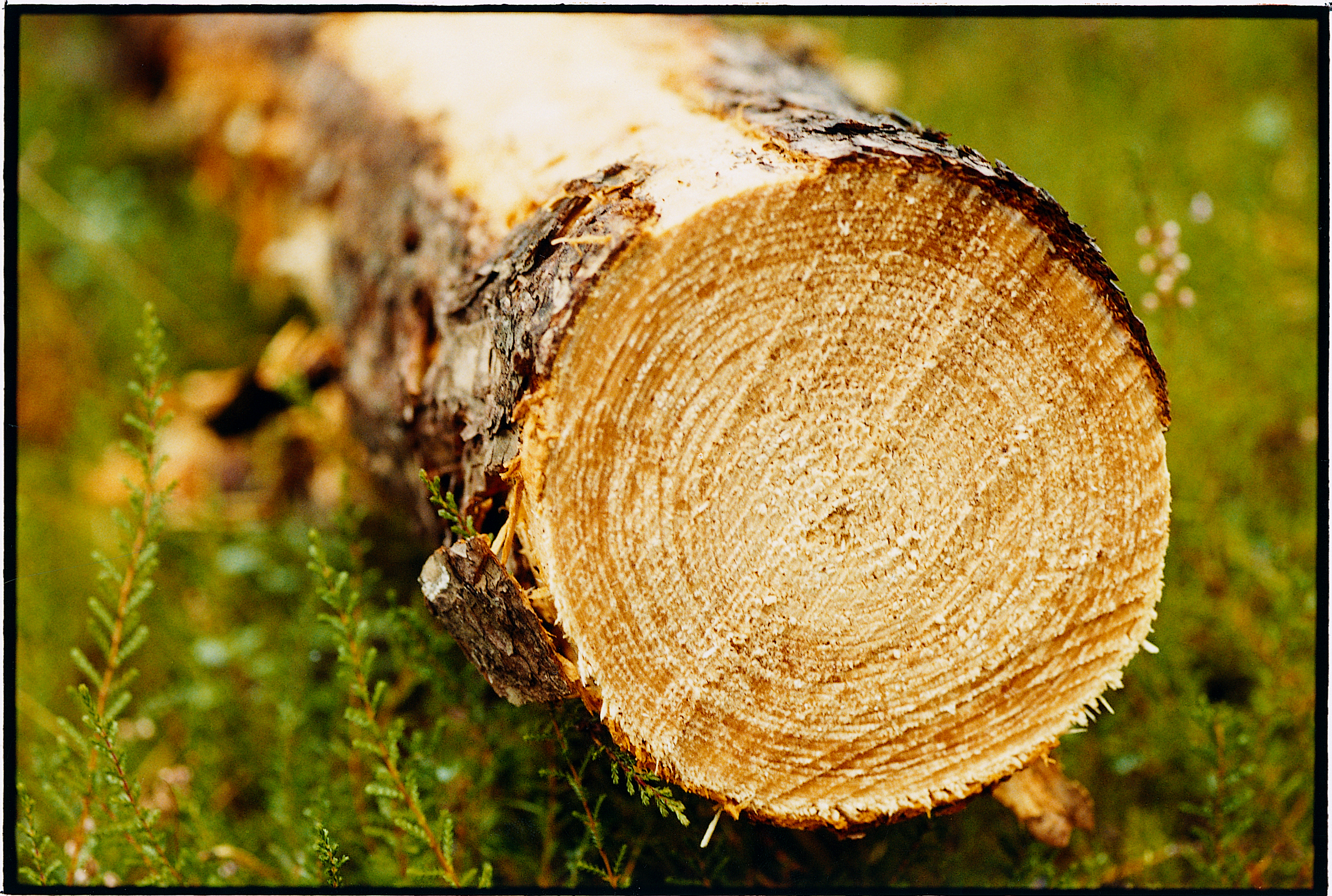 - Beskrivning: Timmerstock i närbild, tall, virke