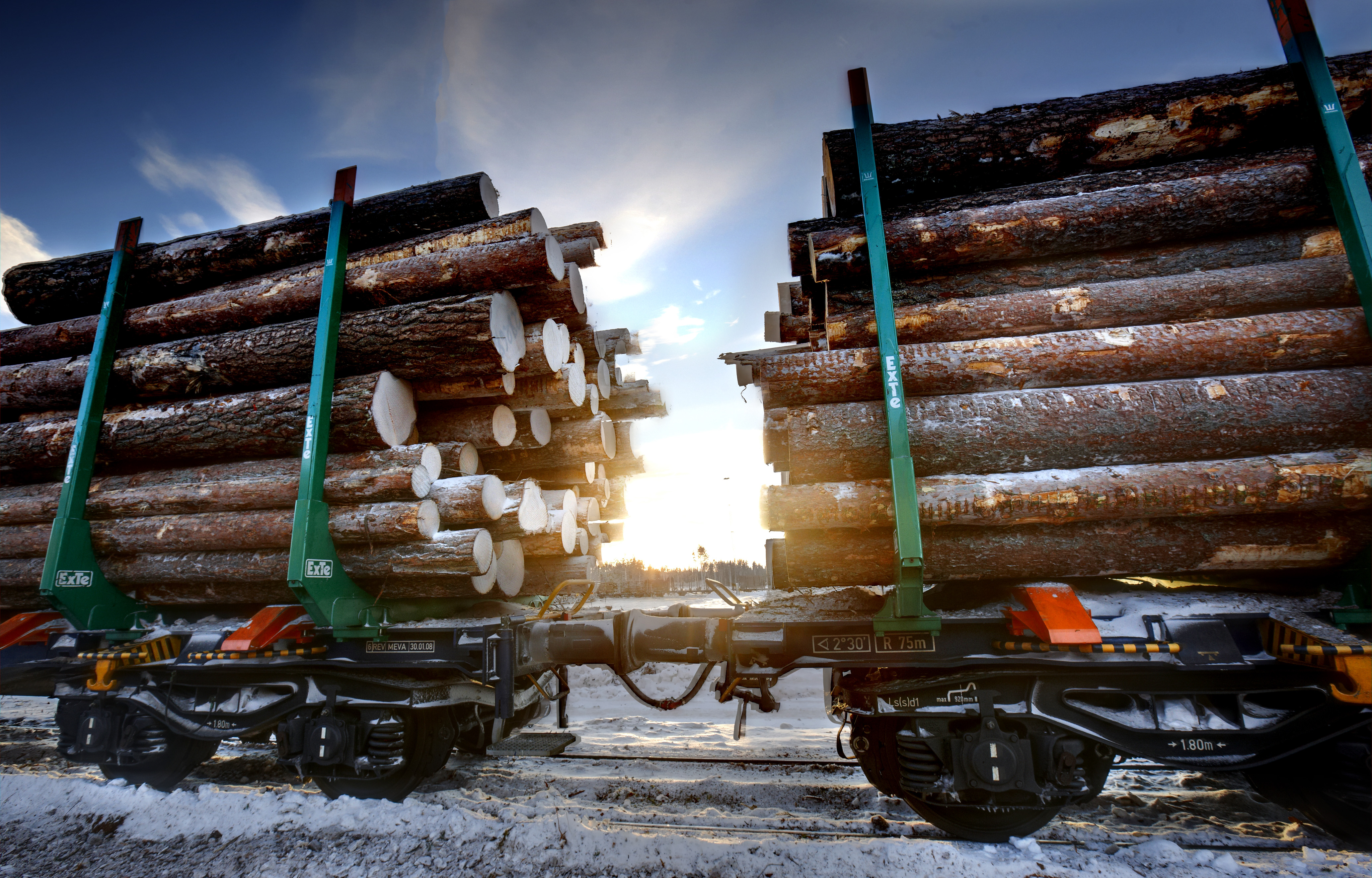 - Beskrivning: Logistik, lastning, lossning, tåg, virke, timmer, stockar, järnväg. Stockaryd 2010-12-09