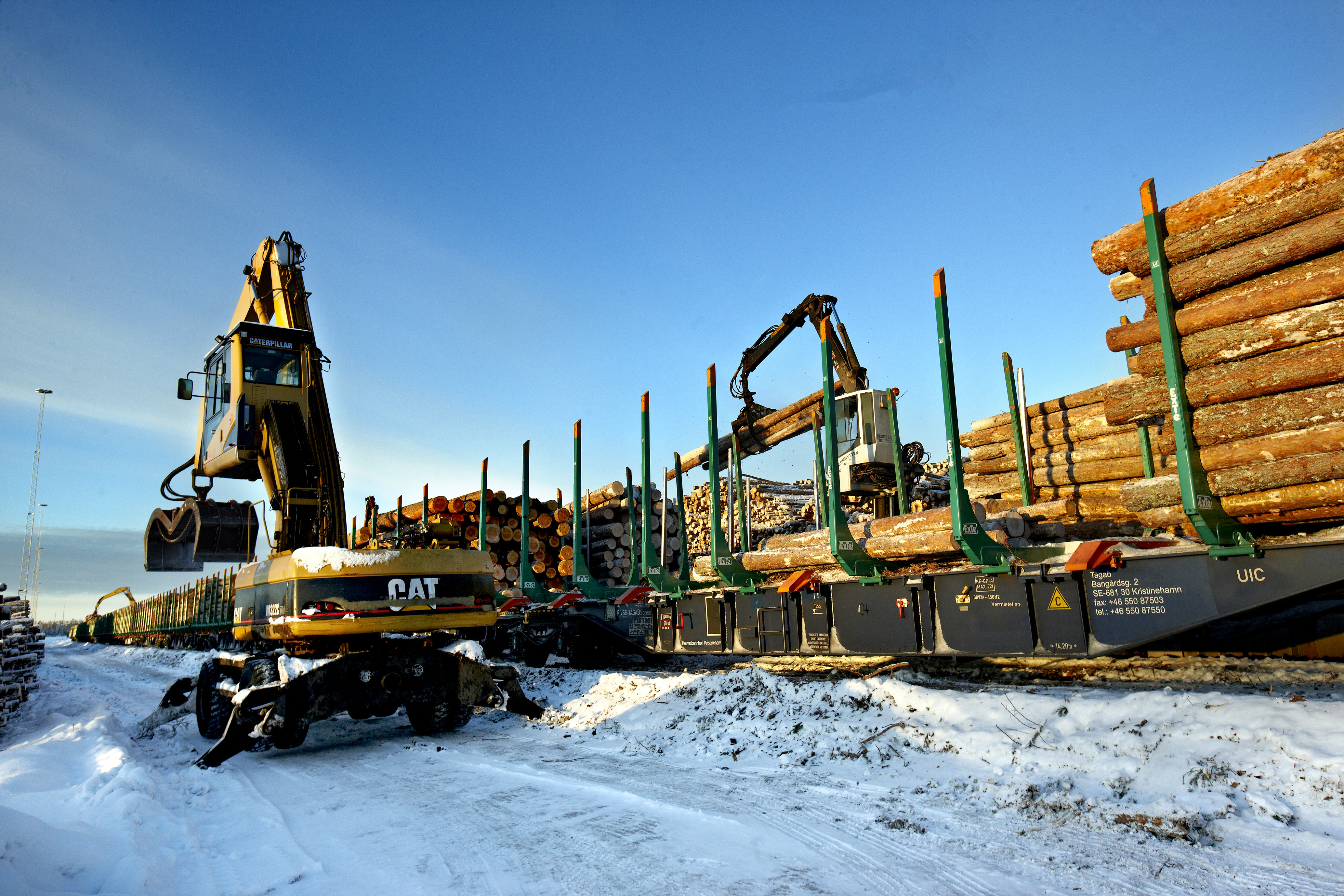 - Beskrivning: Logistik, lastning, lossning, tåg, virke, timmer, stockar, järnväg. Stockaryd 2010-12-09
