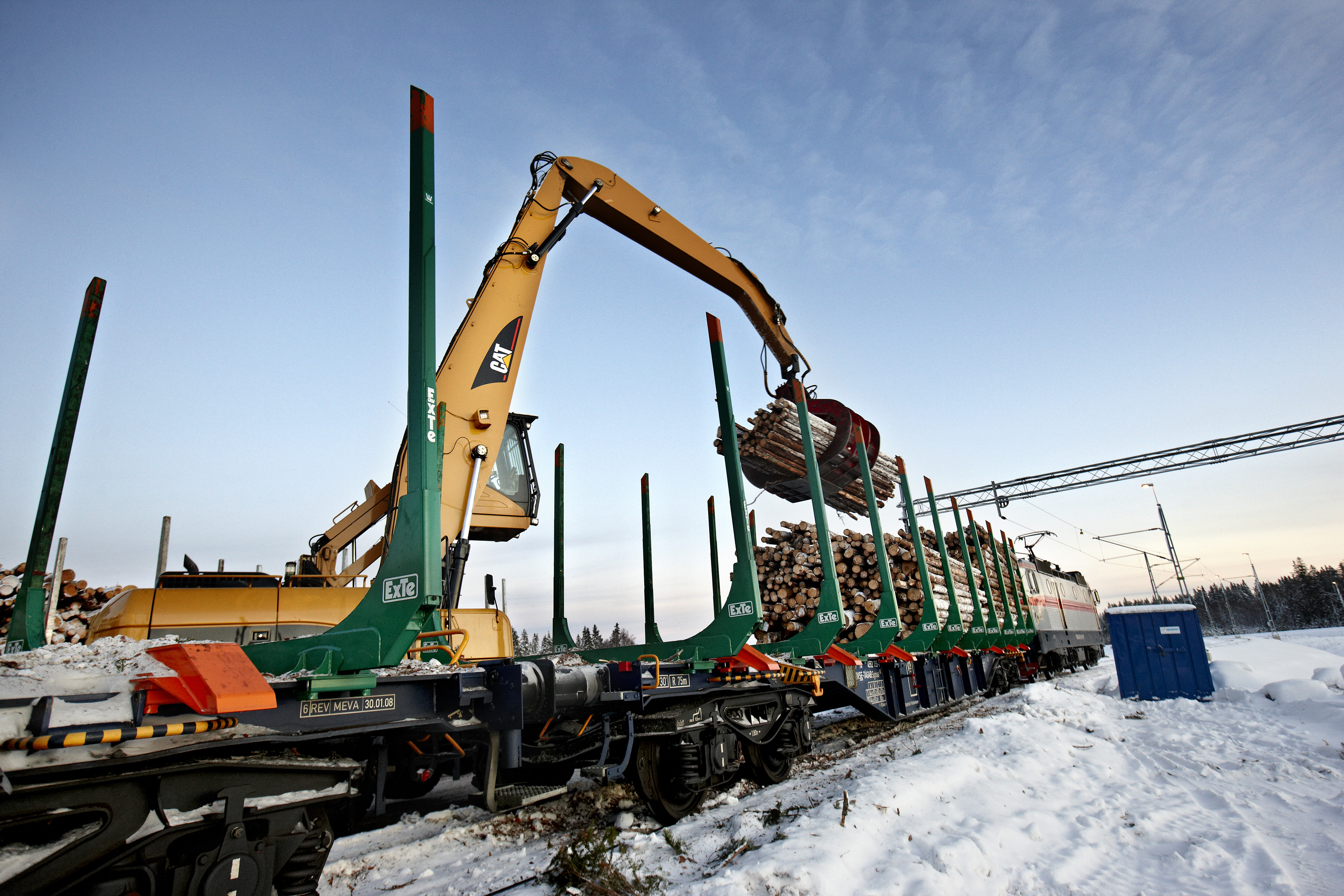 - Beskrivning: Logistik, lastning, lossning, tåg, virke, timmer, stockar, järnväg. Virkesterminal Stockaryd 2010-12-09