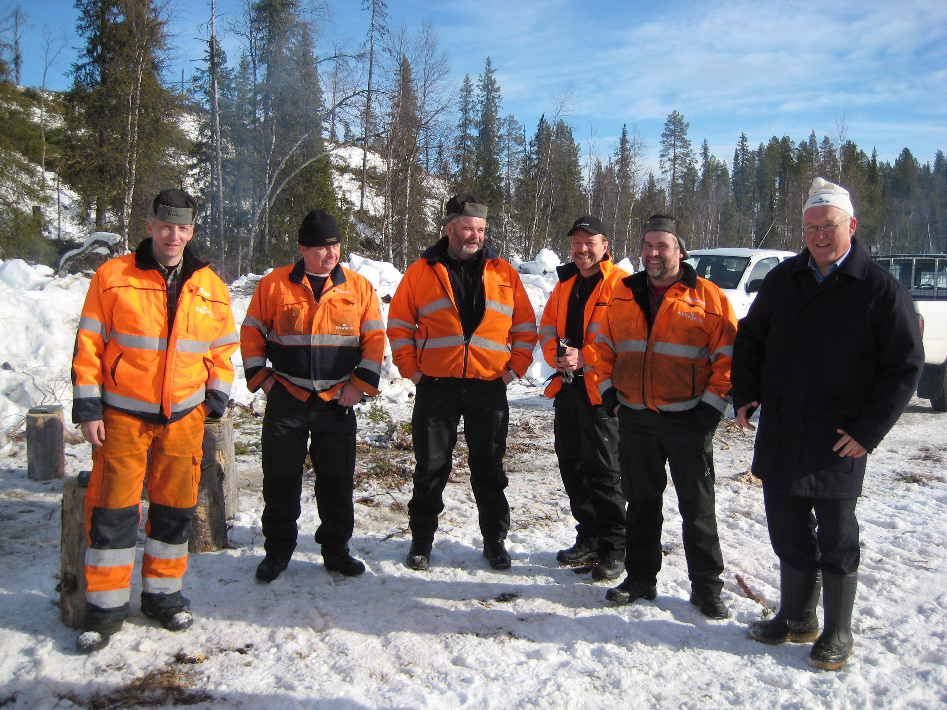 - Beskrivning: Avverkningslag 1711 fr. v: Birger Lahti, Tomas Erkki, Carl-Johan Tornberg, Torsten Hannu, Roland Niemi och Göran Persson. Göran Persson besöker Tärendö, mars 2009.