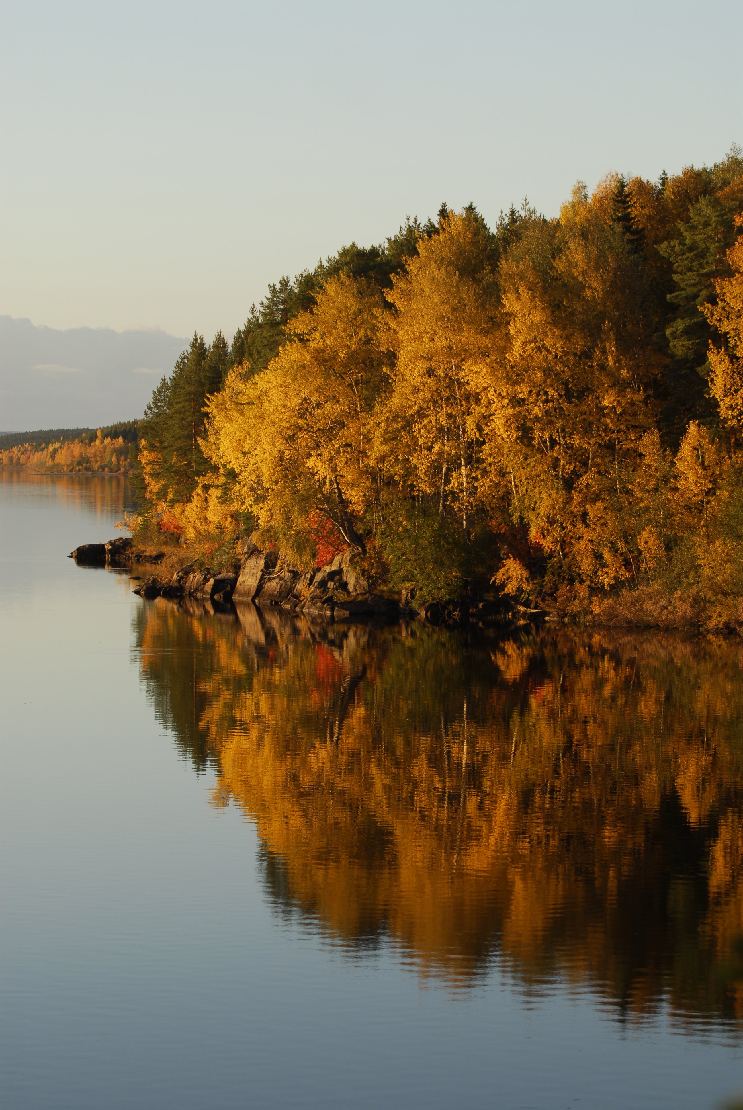 - Beskrivning: Färggranna träd, spegelblank sjö