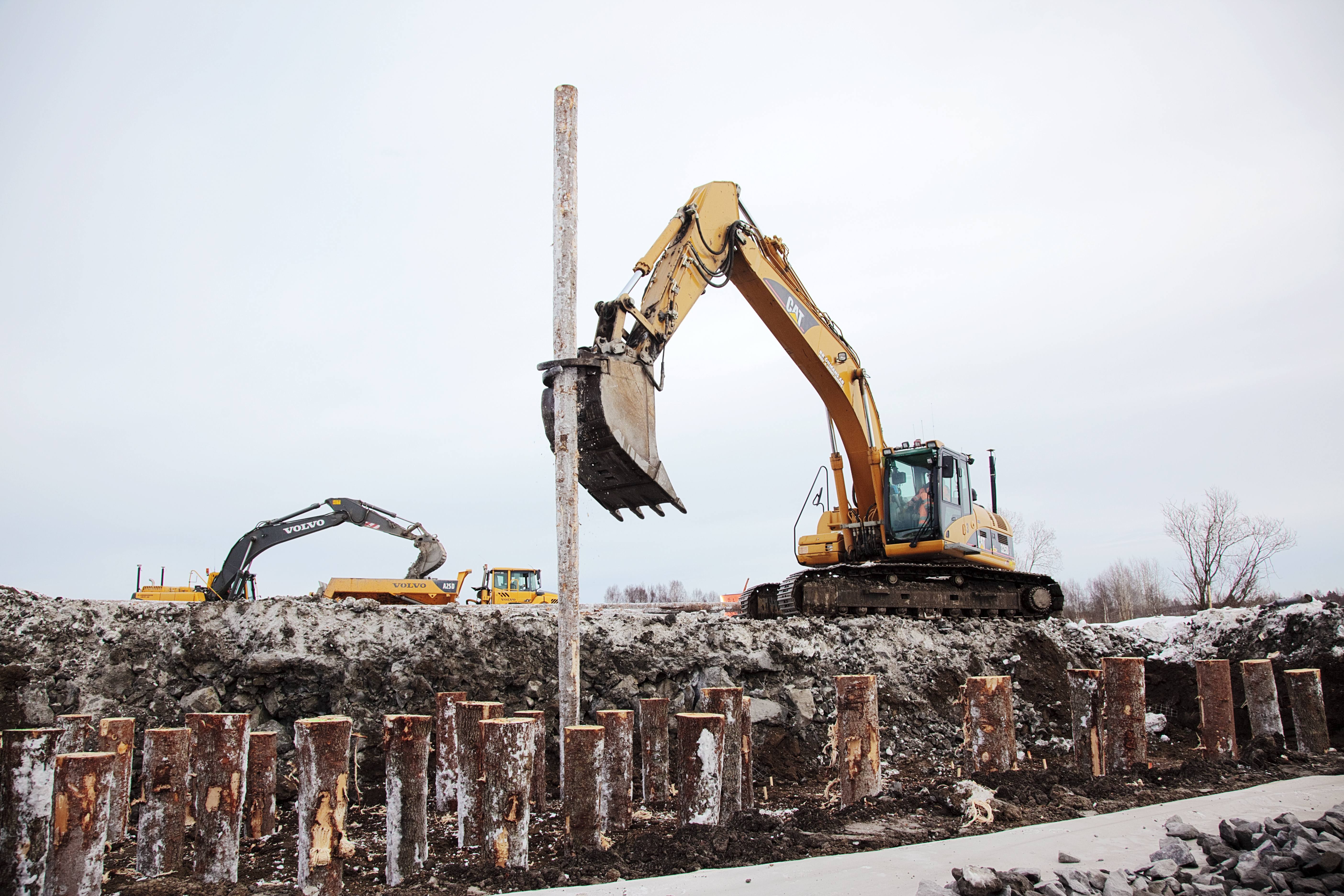 - Beskrivning: Pålning, 7 500 pålar av gran bankas ner i backen för att göra nya norra länken i Umeå körbar.