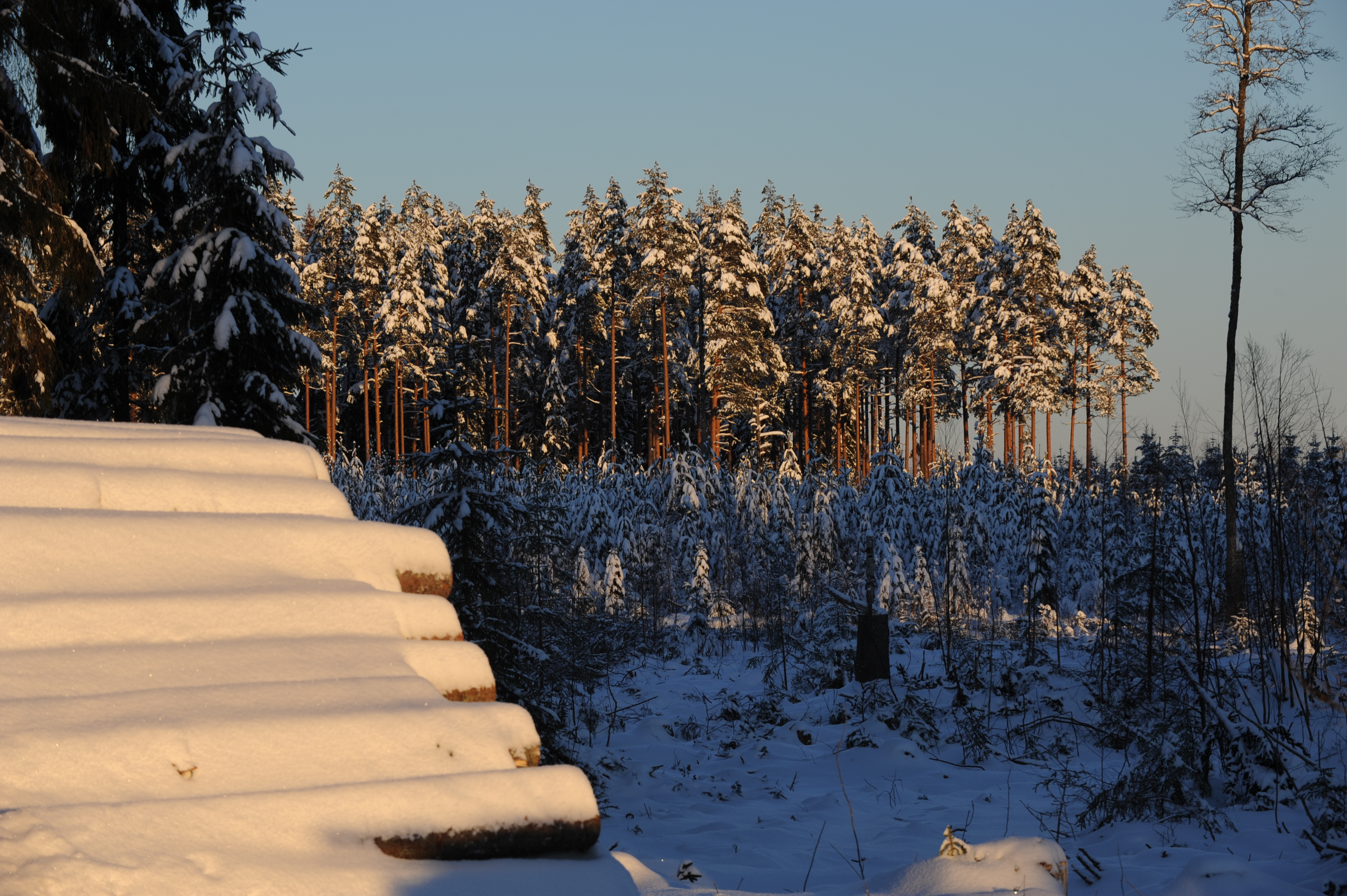 - Beskrivning: Virke, virkesupplägg, timmertrave