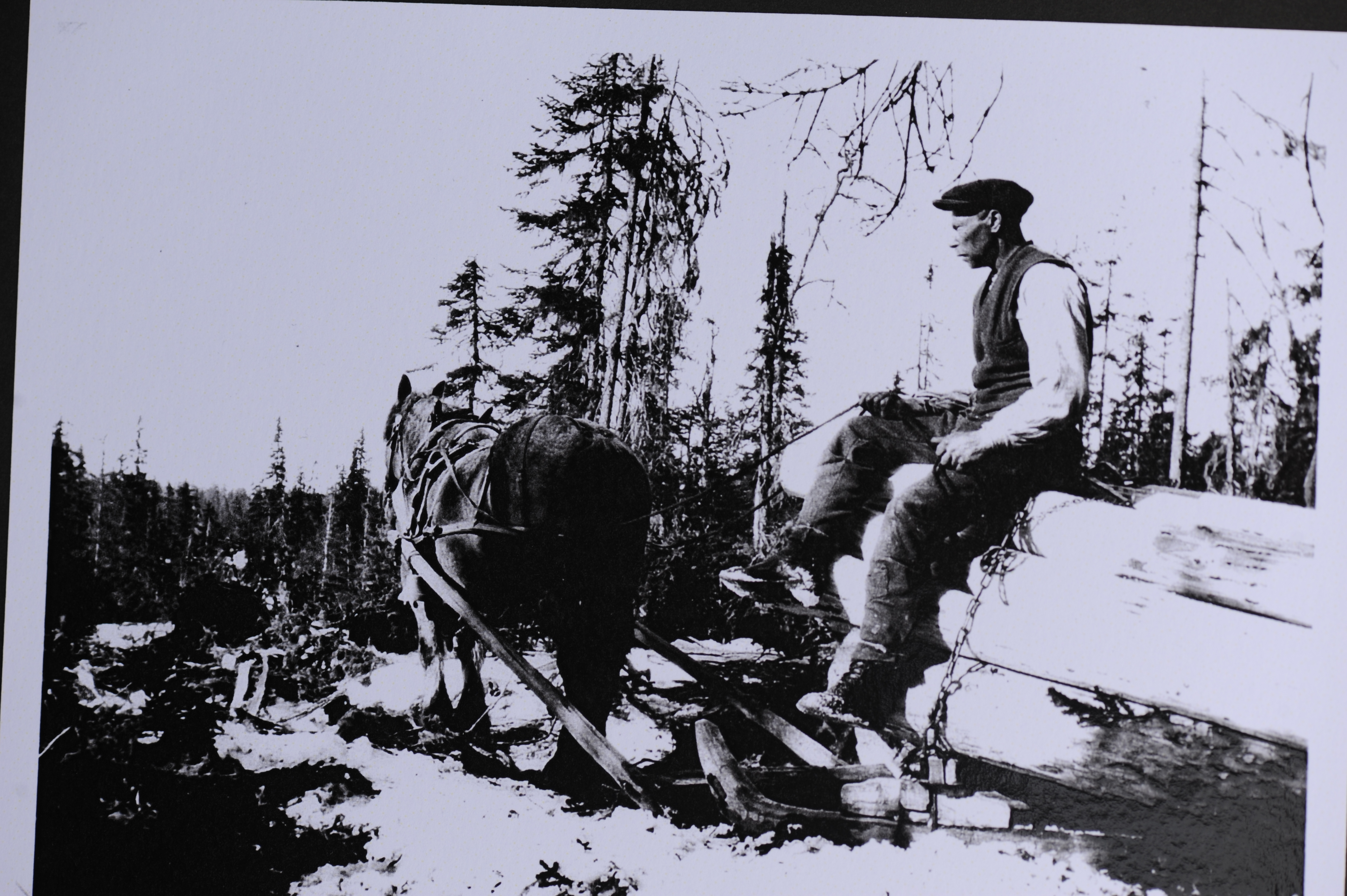 - Beskrivning: Då huggaren var färdig med timret blev det dags för skogens dragare att träda in i bilden. Hela den svenska skogsnäringen och därmed det svenska välståndet har fått råvaran framsläpat av hästen. När köraren efter mödosamt arbete baxat upp och björnat fast dom tunga timmerstockarna på kälken gick färden vidare till avlägget vid flottningsleden. Basvägen hade ofta motlut och långa branta utförslöpor där körarnas skicklighet sattes på prov.
