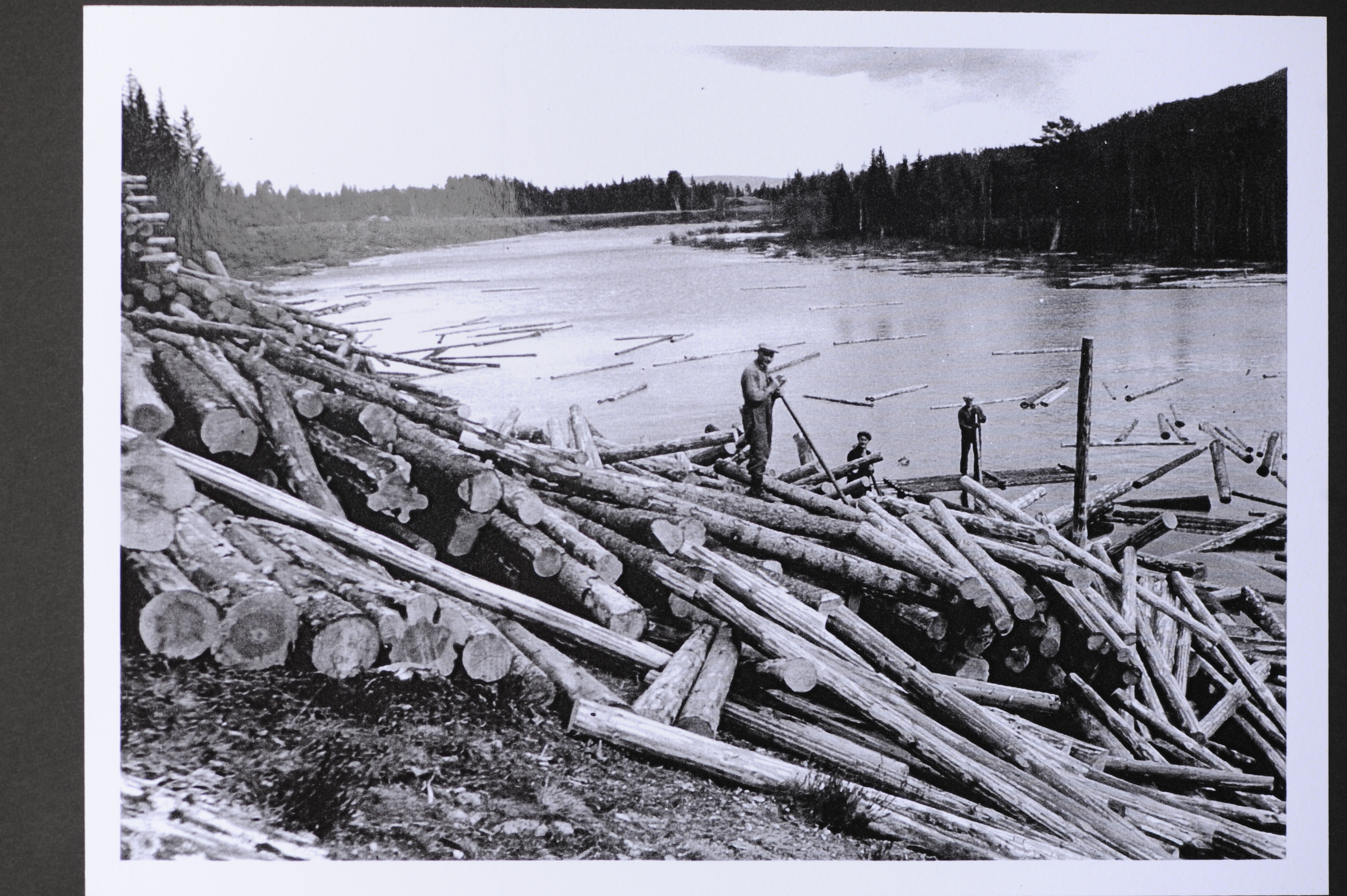 - Beskrivning: Efter utvältning låg stockarna i en röra som mest liknade ett plockepinnspel av kolossalformat. Timmervältor som sträckte sig långt upp på land medförde att man fick baxa och torrdra en stor del av virket ner till vattnet. För att nysta upp timret vid vattenlinjen användes ändamålsenliga flottar som snickrats ihop av torrvirke. När alla klabbar baxats ut i strömfåran var det dags att gå med "rumpan" för att dra ut timmer som blivit stransatt ner i vattendragen.'