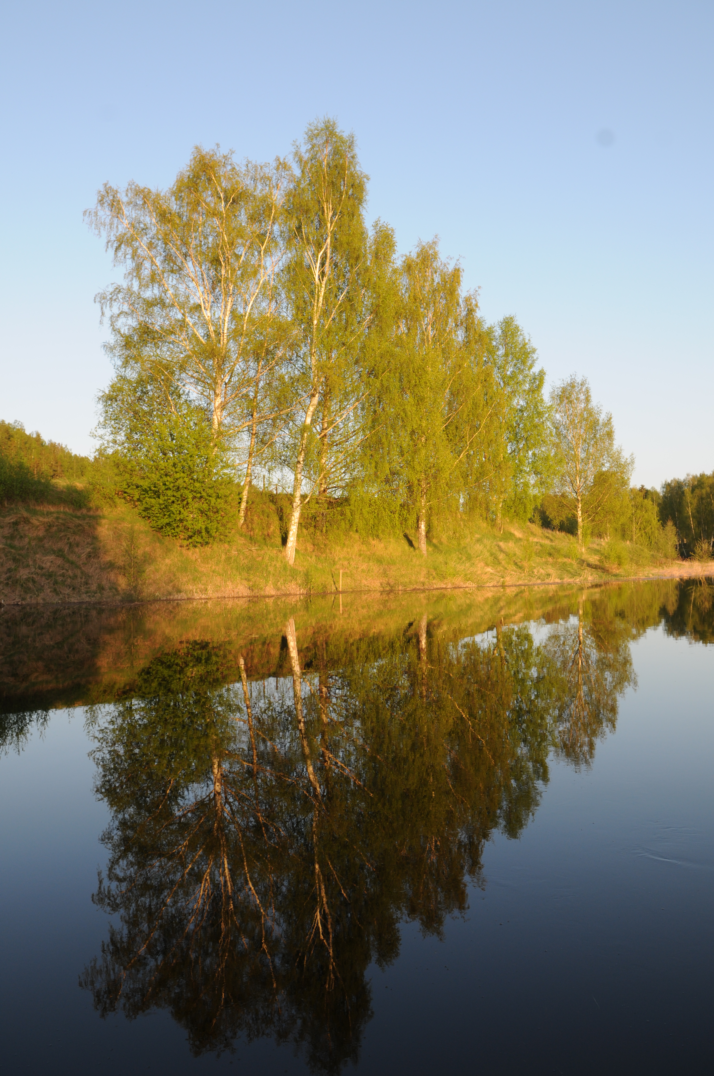 Björkar vid strandkant